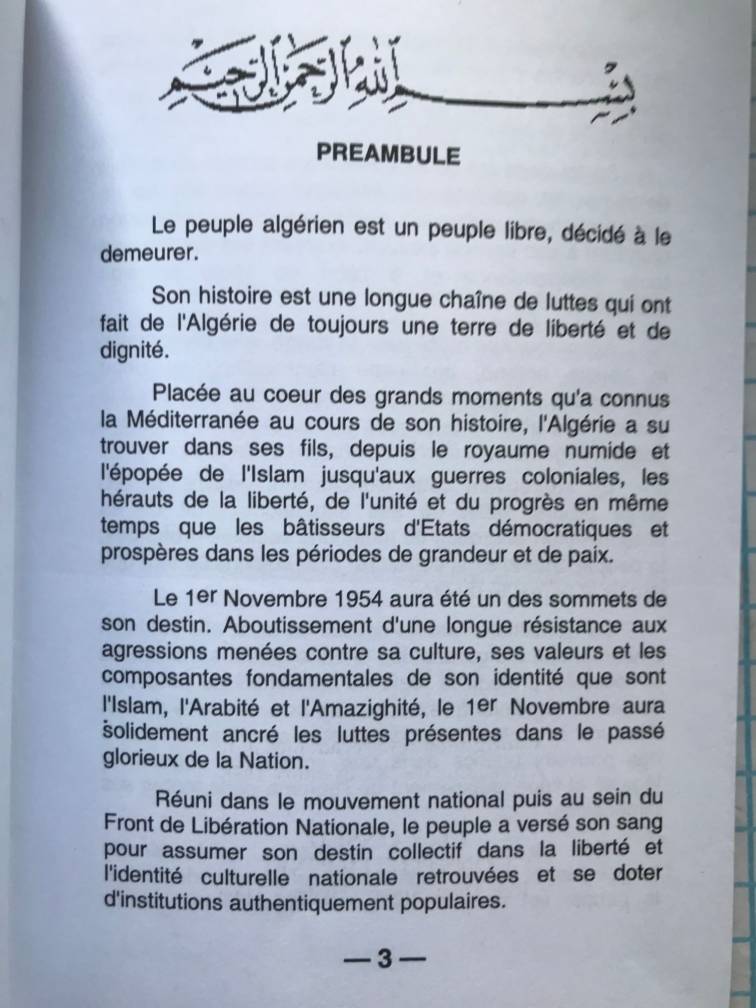 Constitution de la Republique Algerienne Democratique et Populaire