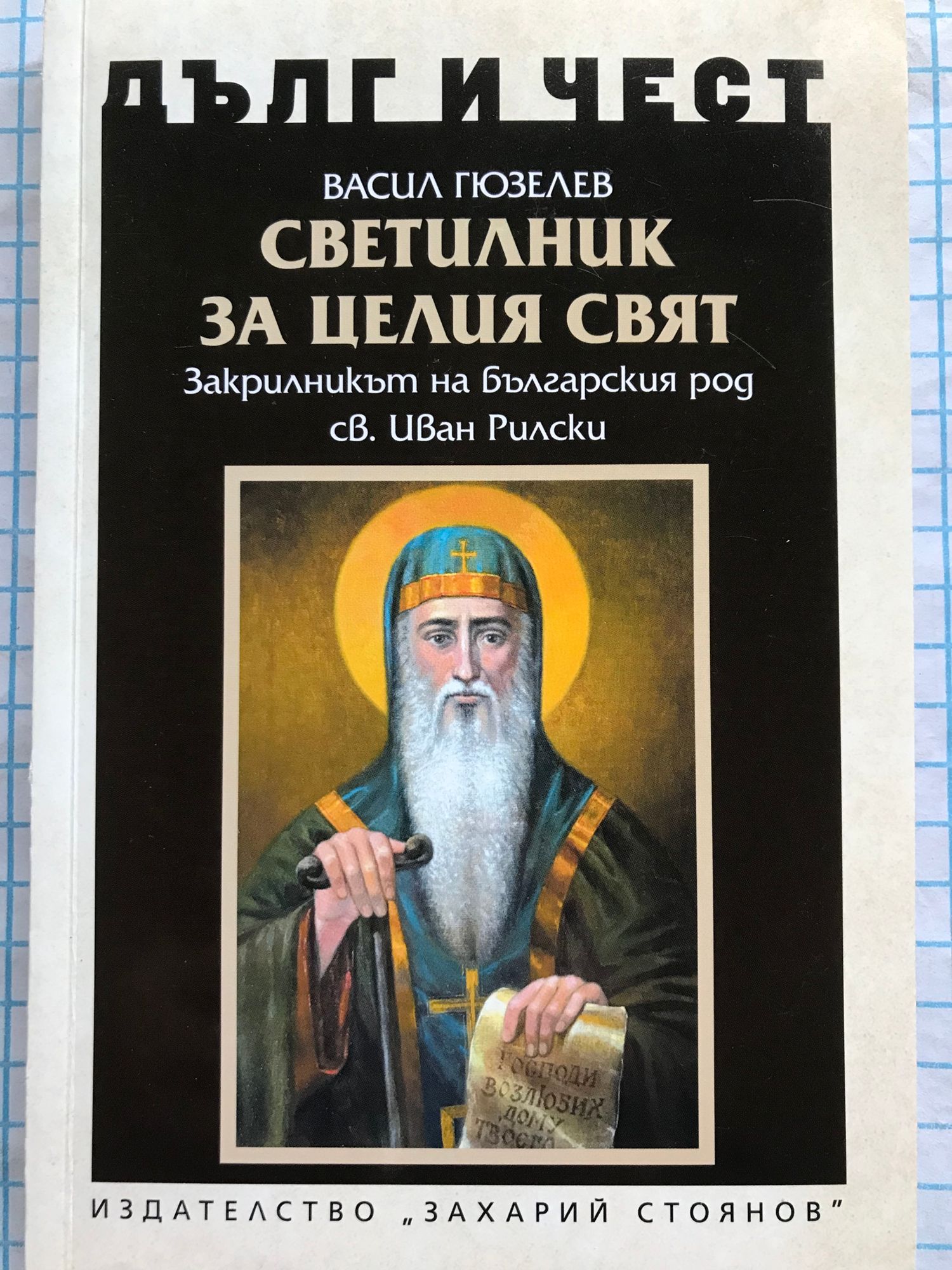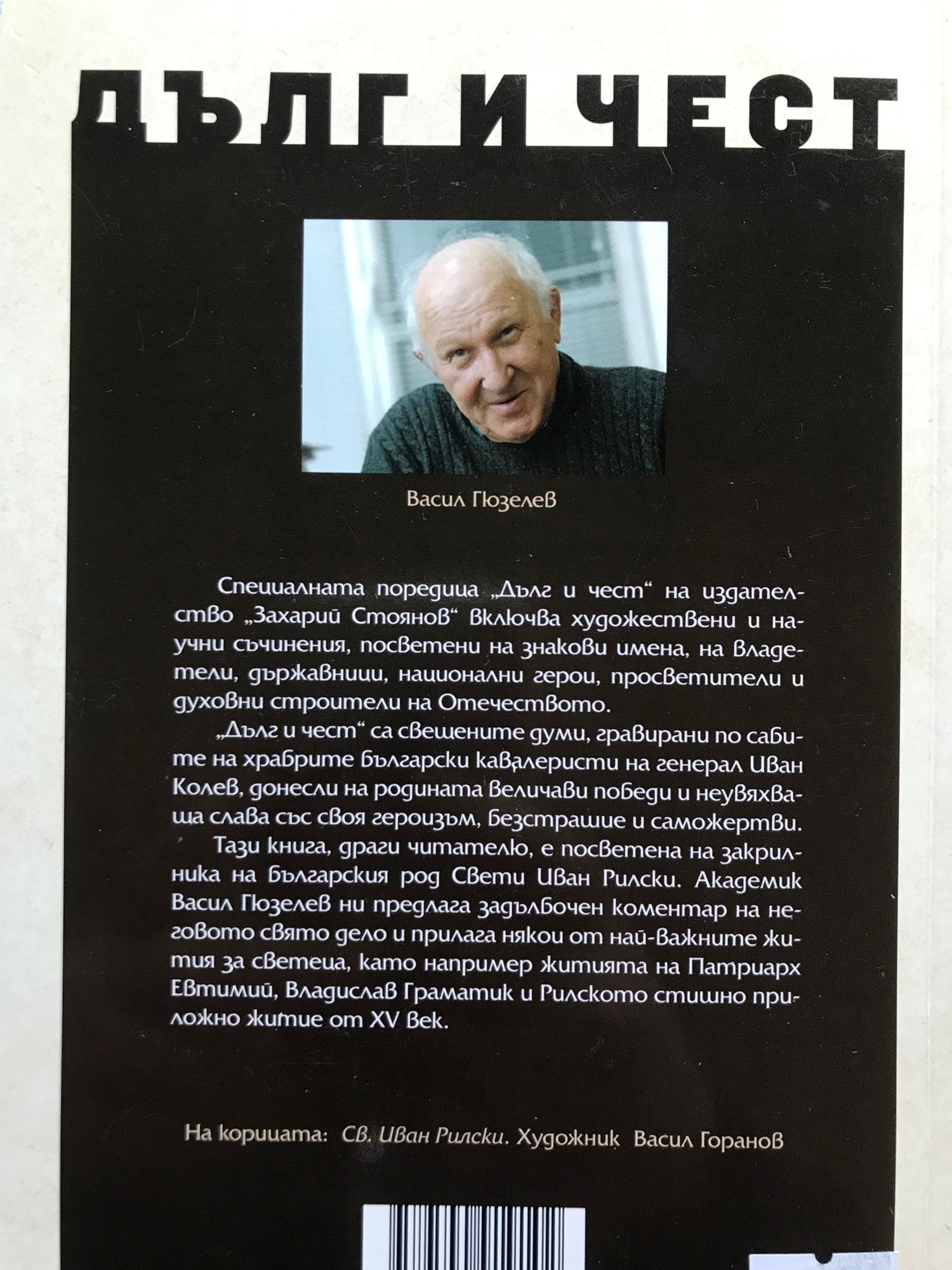 „Дълг и чест“ са свещените думи, гравирани по сабите на храбрите български кавалеристи на генерал Иван Колев, донесли на родината величави победи и неувяхваща слава със своя героизъм, безстрашие и саможертви. Тази книга, драги читателю, е посветена на закрилника на българския род Свети Иван Рилски. Академик Васил Гюзелев ни предлага задълбочен коментар на неговото свято дело и прилага някои от най-важните жития за светеца, като например житията на Патриарх Втимий, Владислав Граматик и Рилското стишно приложно житие от XV век.