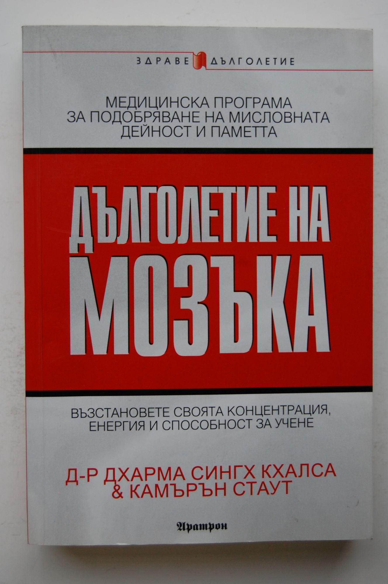 Опирайки се на постигнатите клинични резултати при работата си с многобройни пациенти, д-р Дхарма Сингх Кхалса е разработил медицинска програма, предназначена да ви помогне: - да мислите по-добре; - да бъдете по-продуктивни и оптимистично настроени; - да преодолеете последствията от загубата на памет, свързана с възрастта; - да увеличите силата и жизнеността на своя мъж. Тази програма създава повишени умствени способности и дълголетие на мозъка с помощта на нов медицински подход, който комбинира достиженията на съвременната западна медицина с най-мощните и доказани техники от източната и алтернативната медицина.