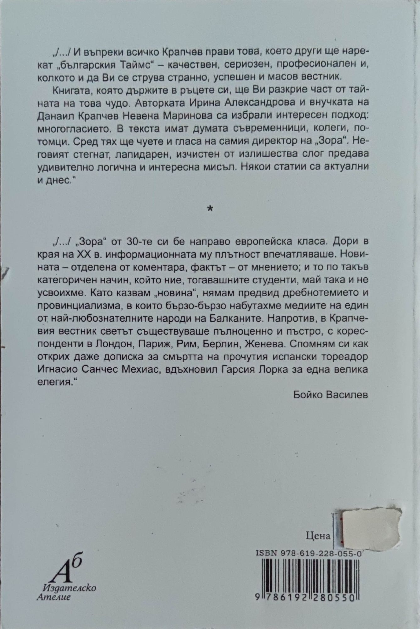 7,16 € / 14,00 лв.Много добро състояние на книжното тяло. С минимални забележки за някои ръбове на кориците