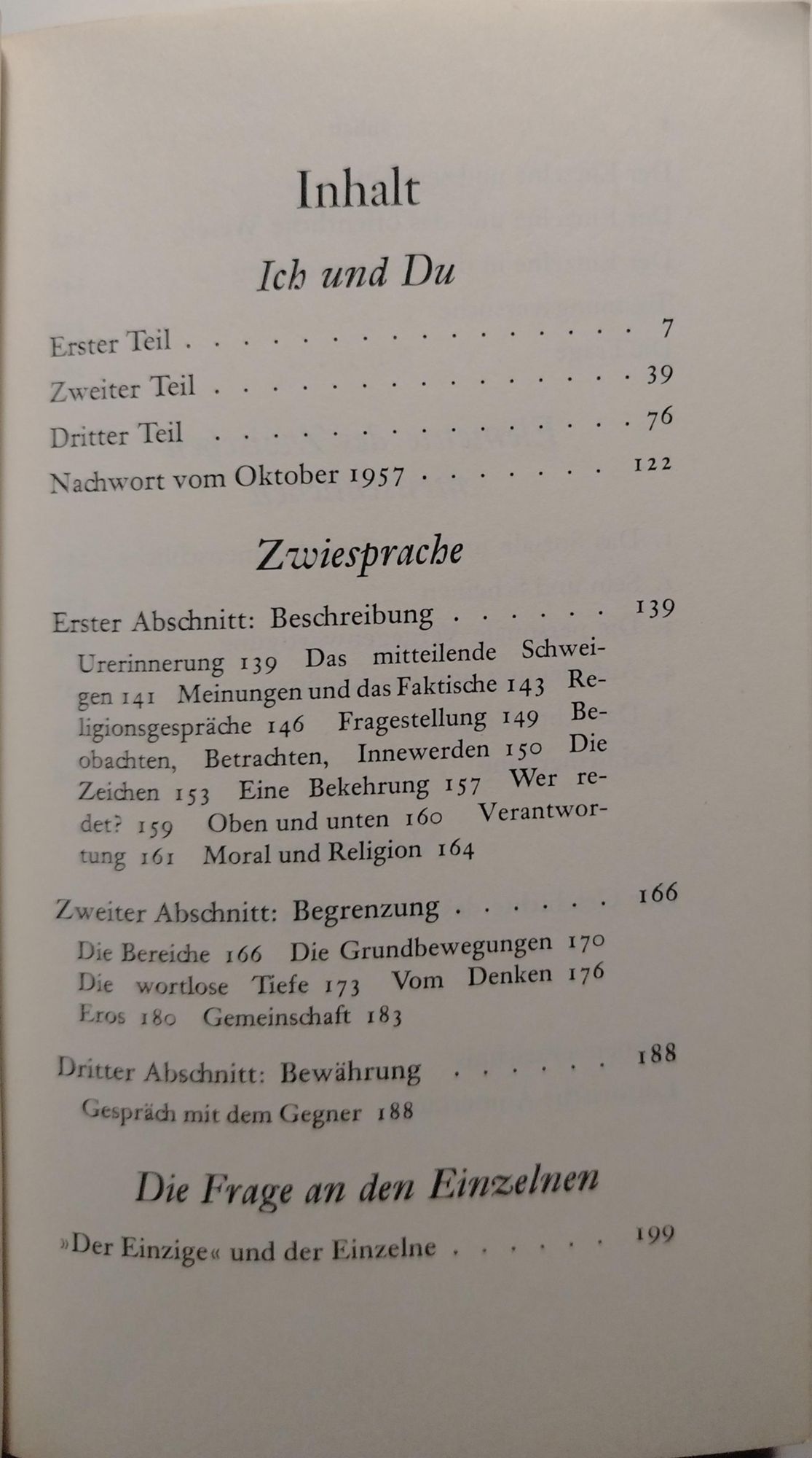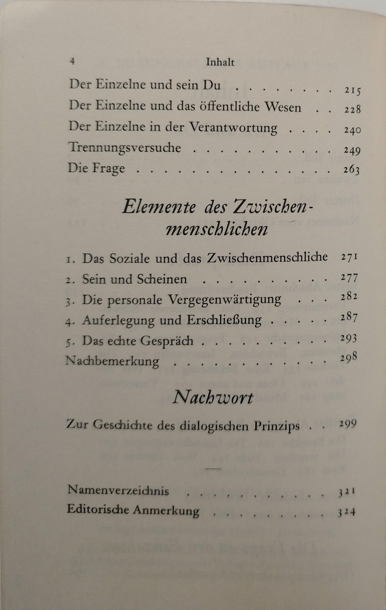 Ich und Du. Zwiesprache. Die Frage an den Einzelnen. Elemente des Zwischenmenschlichen. Zur Geschichte des dialogischen Prinzips