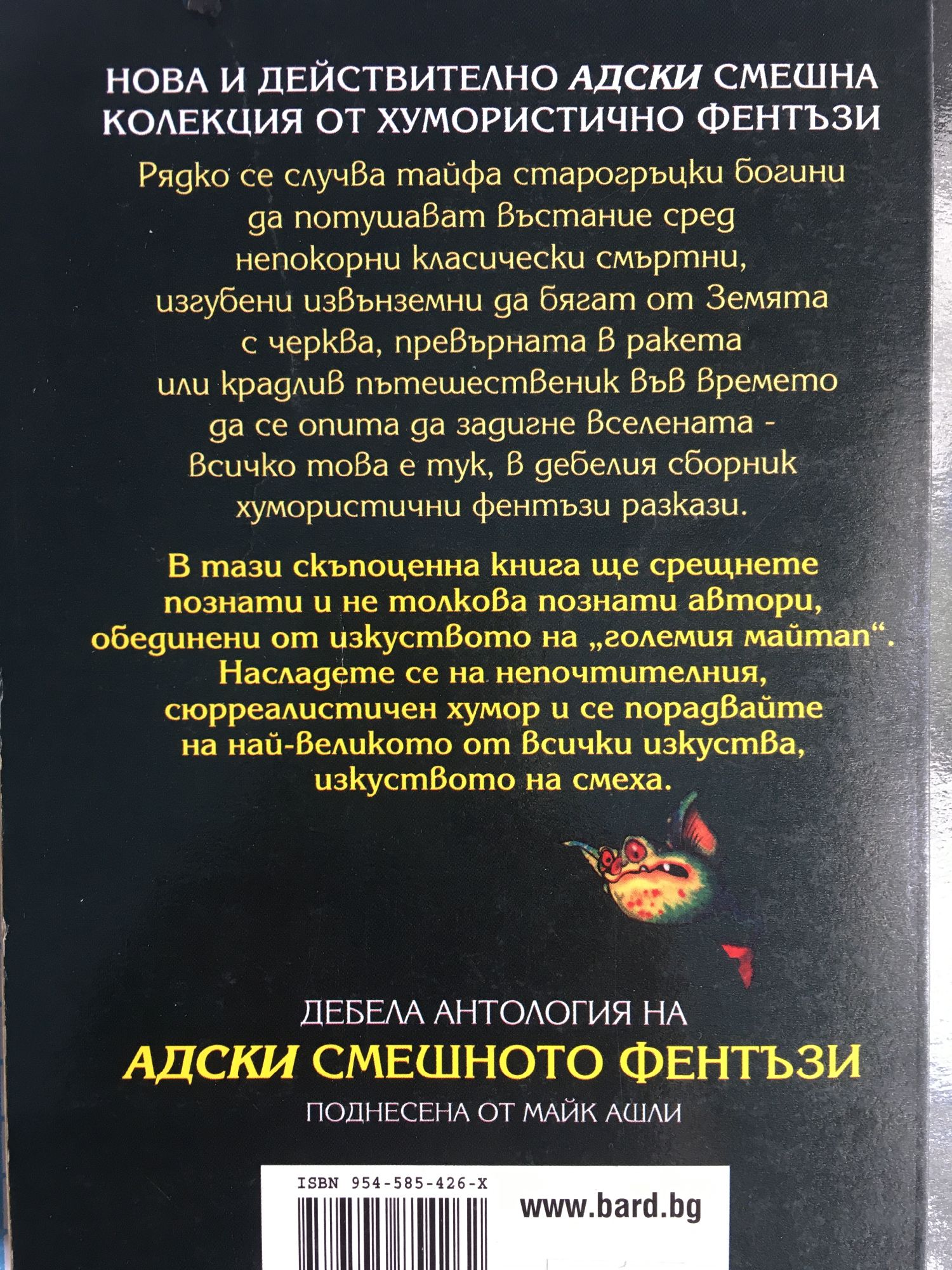 Рядко се случва тайфа старогръцки богини да потушават въстание сред непокорни класически смъртни, изгубени извънземни да бягат от Земята с черква, превърната в ракета или крадлив пътешественик във времето да се опита да задигне Вселената- всичко това е тук в дебелия сборник хумористични фентъзи разкази. В тази скъпоценна книга ще срещнете познати и не толкова познати автори, обединени от изкуството на " големия майтап ".