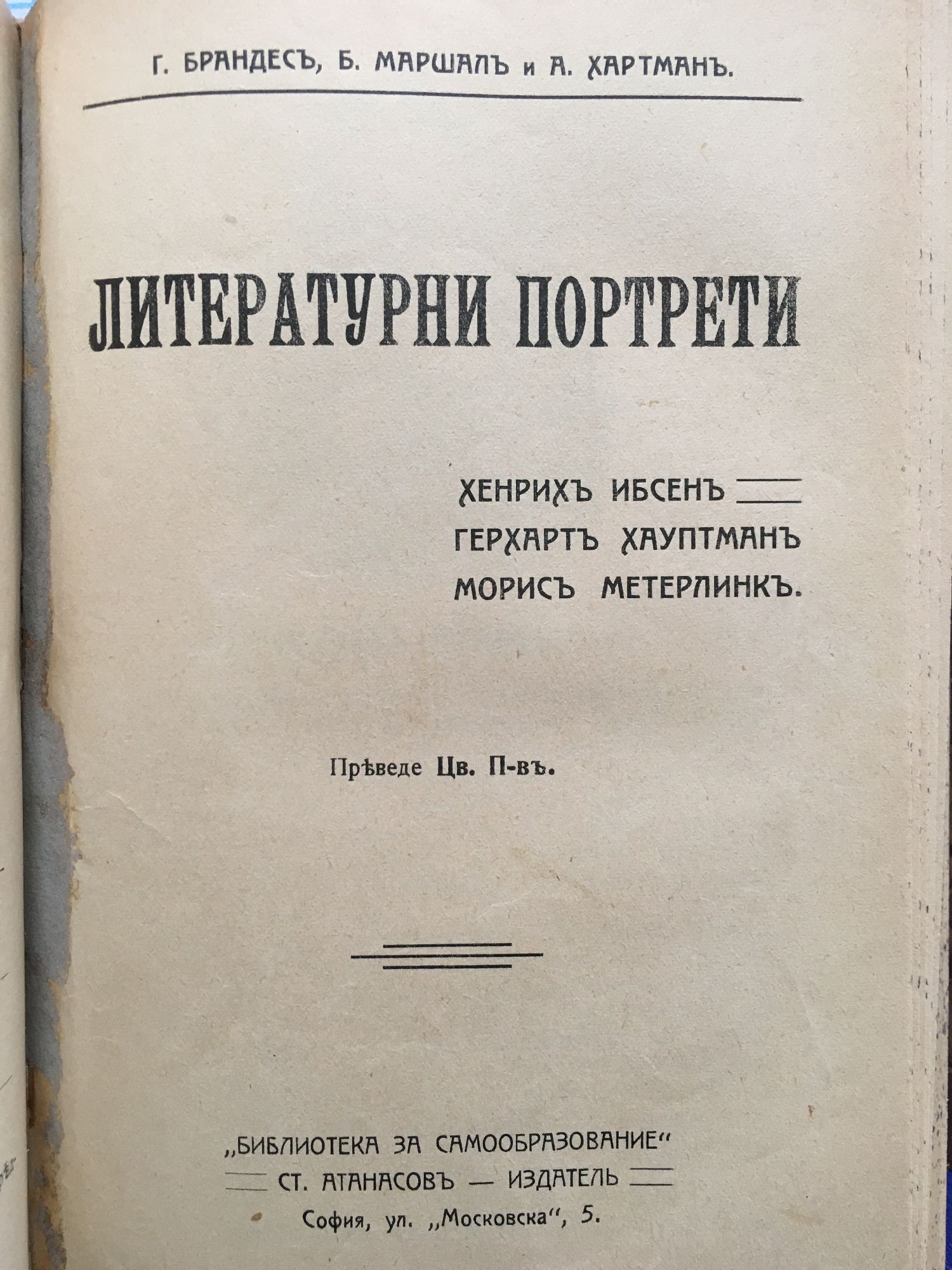 от Ю. Стеклов, Максим Горки, Г. Брандес, Б. Маршал, А. Хартман, В. Белше, д-р Петър Джидров