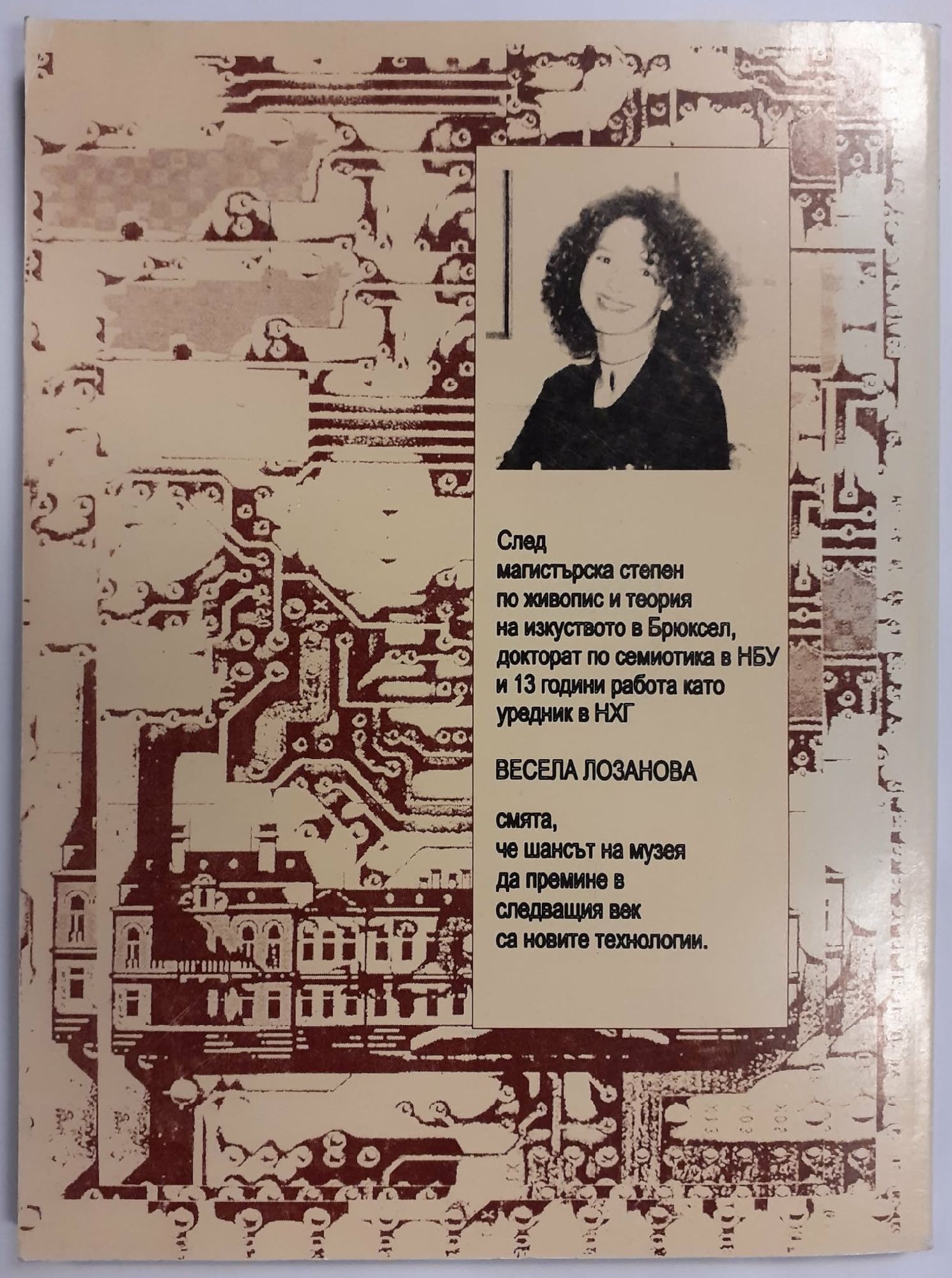 Мнение вместо предговор. Намирам тази първа книга на Весела Лозанова за интересна, навременна полезна и уникална. Интересна - защото се занимава с актуални проблеми на съвременната музеология, пречупени през Погледа на един ерудиран и прецизен специалист. Весела е възпитаник на белгийското Висше училище за визуални изкуства Ла Камбр, където е получила едно добро, бих казал, универсално европейско образование. Самата тя е чувствителен и надарен художник тънко усещане за цвят - е хармоничен изграден артист. Диапазонът на творческите й търсения е голям - от традиционната кавалентна картина до по-модерните неконвенционални, дори компютърни, форми. Спирам се на тази страна на нейното творческо амплоа, защото смятам това е особено важно във връзка с изследваната теза. Защото Весела навлиза в една малко позната територия. Каквато е семиотиката и анализира знаковостта в картината и в социалния живот въобще - не само в научно-аналитичен, но и в практически план.