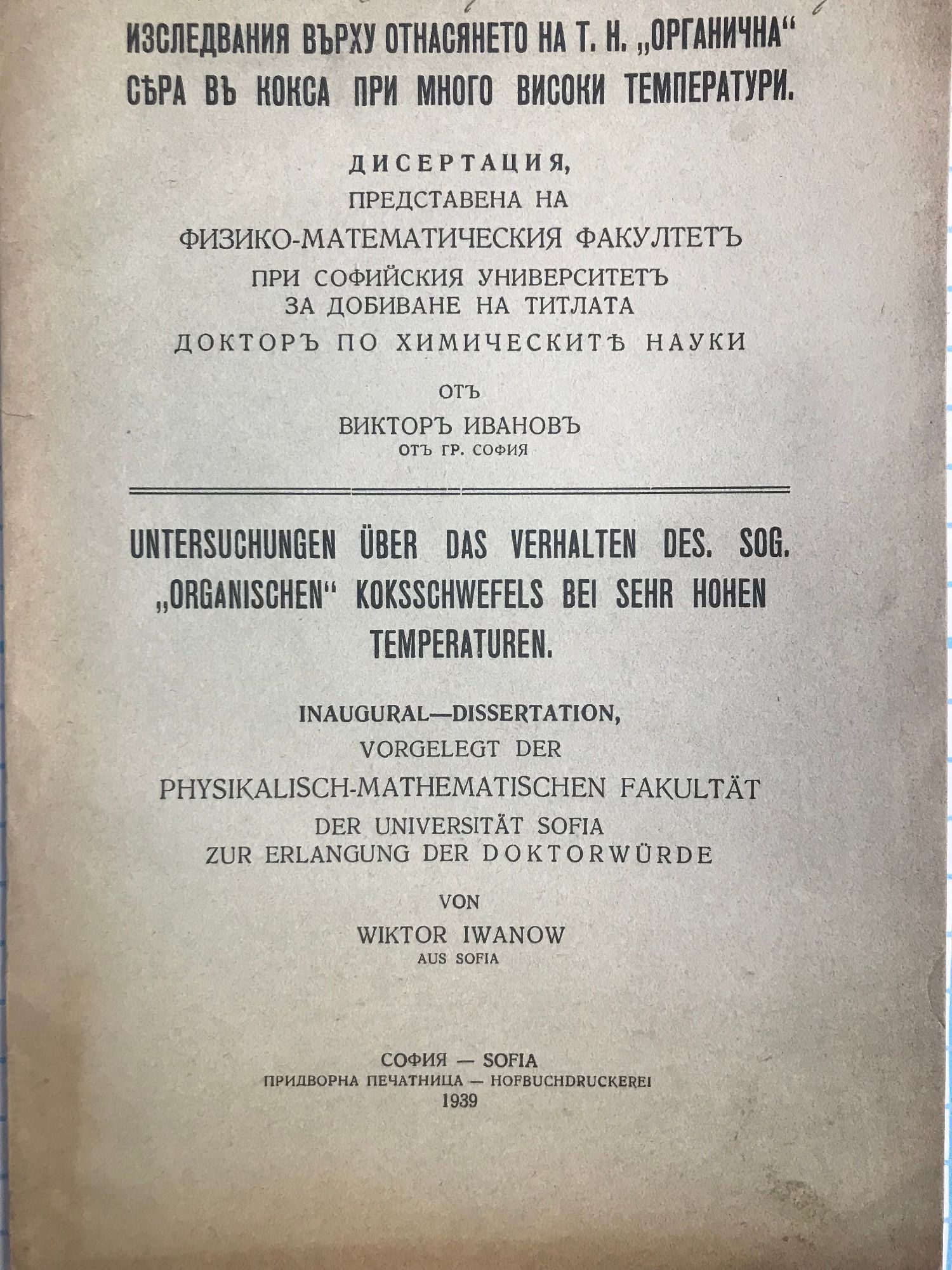 Дисертация, представена на физико-математическия факултетъ при Софийския университетъ за добиване на титлата докторъ по химическите науки