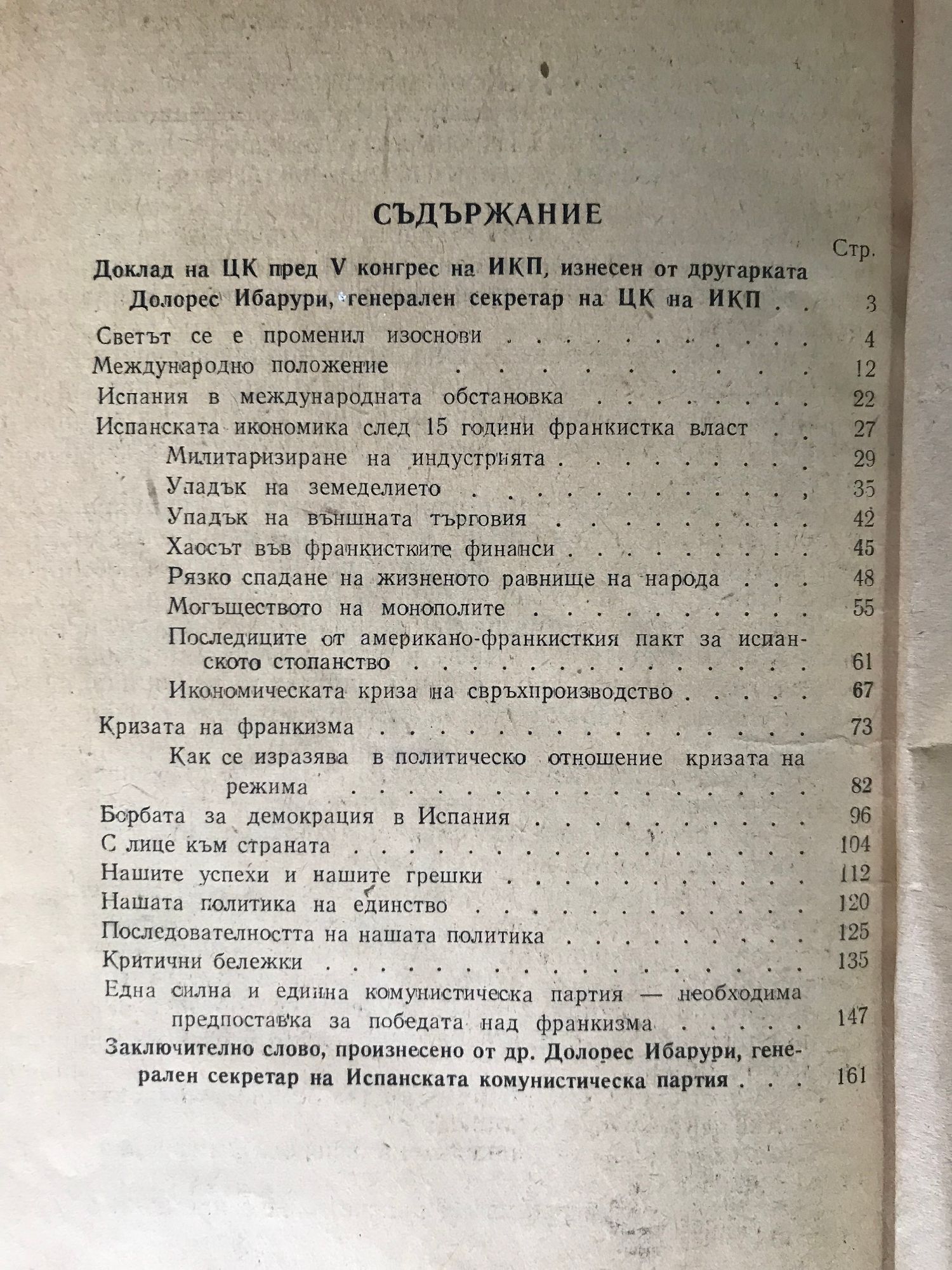 Доклад на централния комитет на испанската комунистическа партия, изнесен пред V конгрес на партията