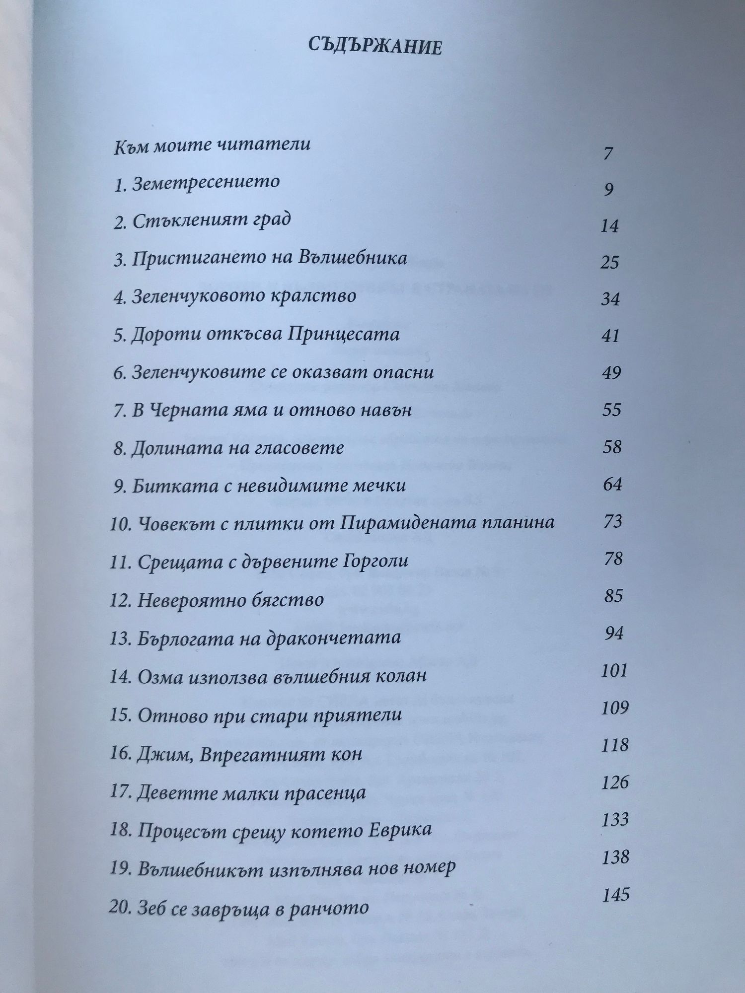 В тази история Дороти се запознава с нови верни приятели – Впрегатния кон Джим, котето Еврика, момчето Зеб, с които пропада в Стъкления град след силно земетресение. Появява се и любимият Вълшебник Оз, който носи със себе си девет малки прасенца. Страната на Зеленчуковите се оказва доста опасна и макар да са захвърлени в Черната яма, дружината успява да се измъкне. Приятелите преминават много премеждия по пътя си към Пирамидената планина с надеждата, че ще излязат отново на повърхността на земята. Пътешествениците се озовават последователно в Страната на Горголите, в Долината на Во, в бърлогата на дракончетата. Благодарение на вълшебния колан на Озма всички са спасени и гостуват сред стари приятели в Страната на Оз. Дали свършват обаче до тук препятствията на малката Дороти и ще се завърне ли отново у дома?...