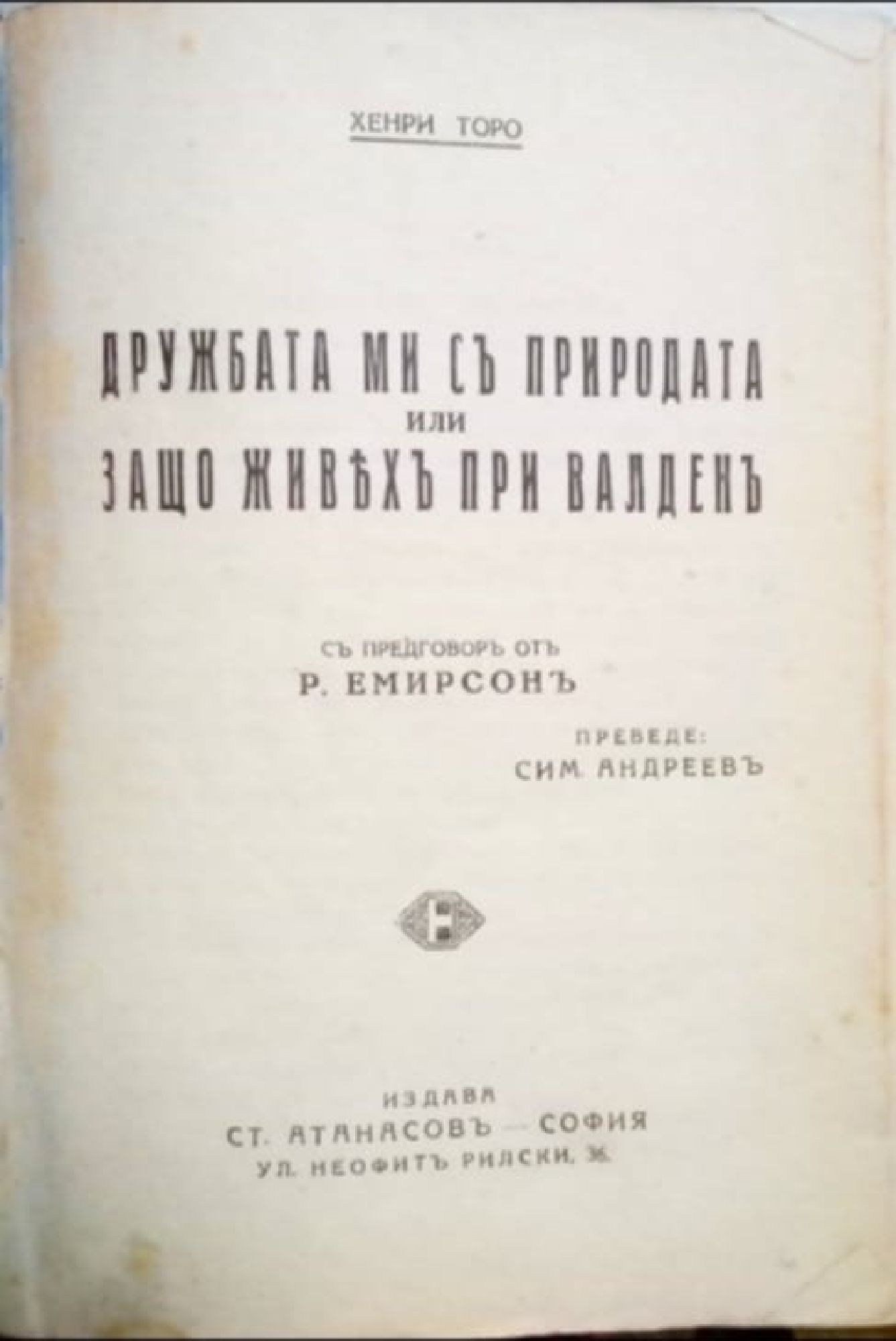 Дружбата ми съ (с) природата или защо живяхъ (живях) при Валденъ (Валден)