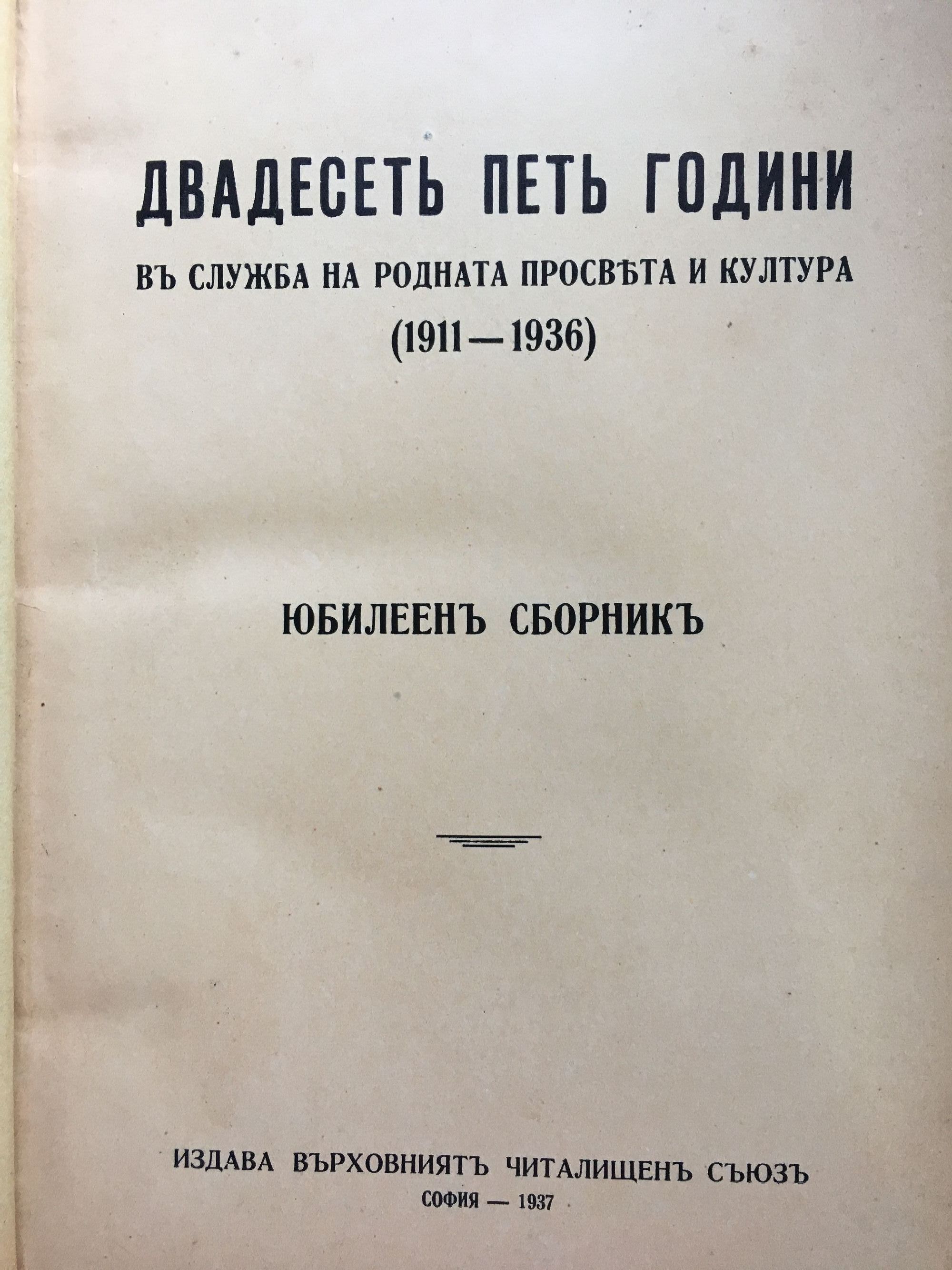 Двадесеть петь години въ служба на родната просвета и култура (1911 - 1936) / Двадесет пет години в служба на родната просвета и култура (1911 - 1936)