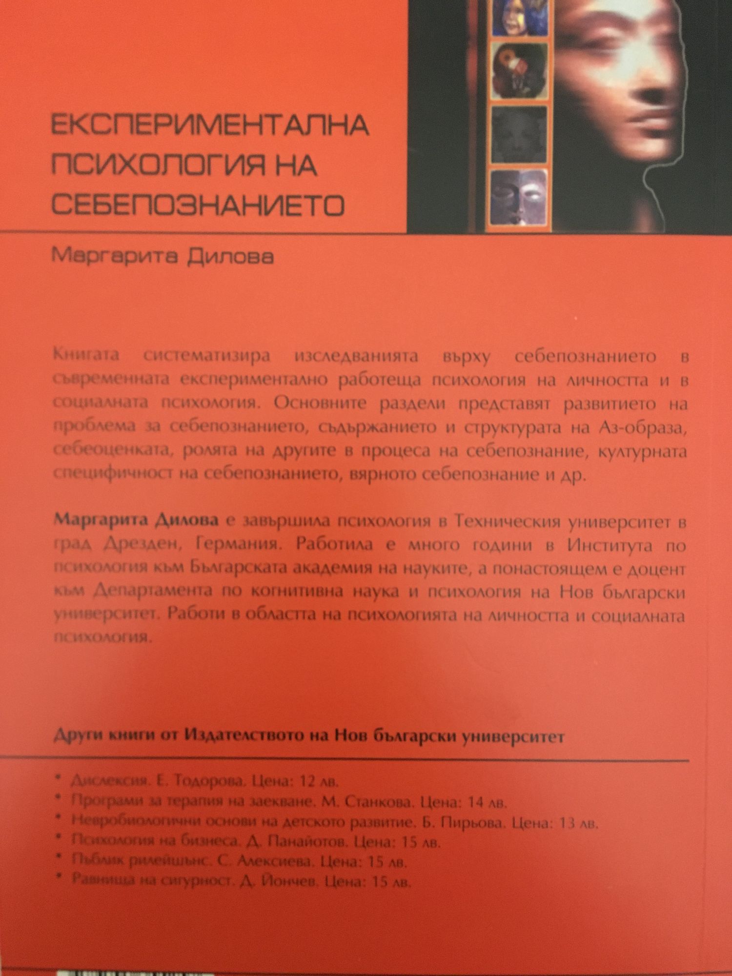 Книгата систематизира изследванията върху себепознанието в съвременната експериментално работеща психология на личността и в социалната психология. основните раздели представят развитието на проблема за себепознанието, съдържанието и структурата на Аз-образа, себеоценката, ролята на другите в процеса на себепознание, културната специфичност на себепознанието, вярното себепознание и др.