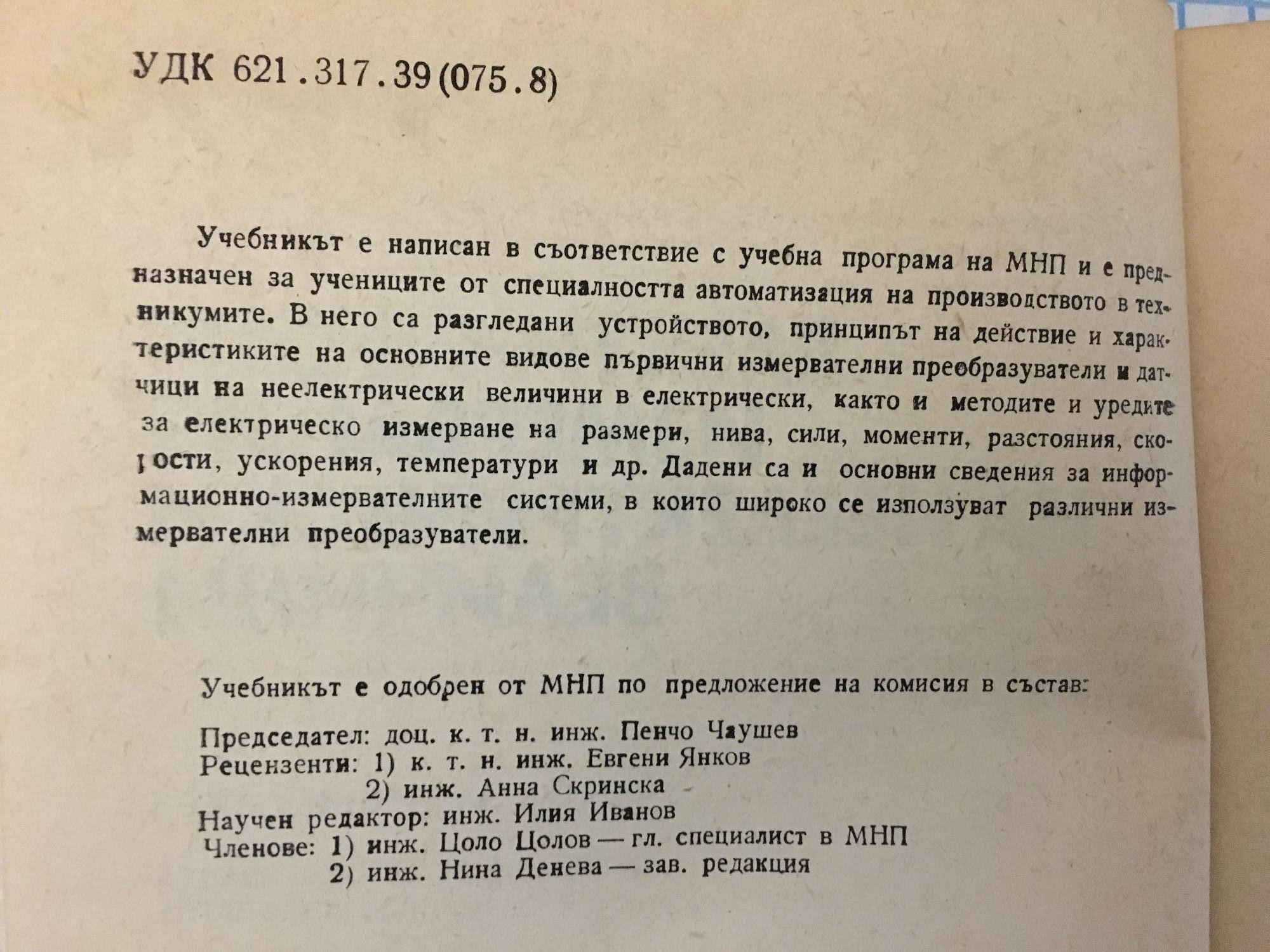 Учебник за техникумите специалност автоматизация на производството