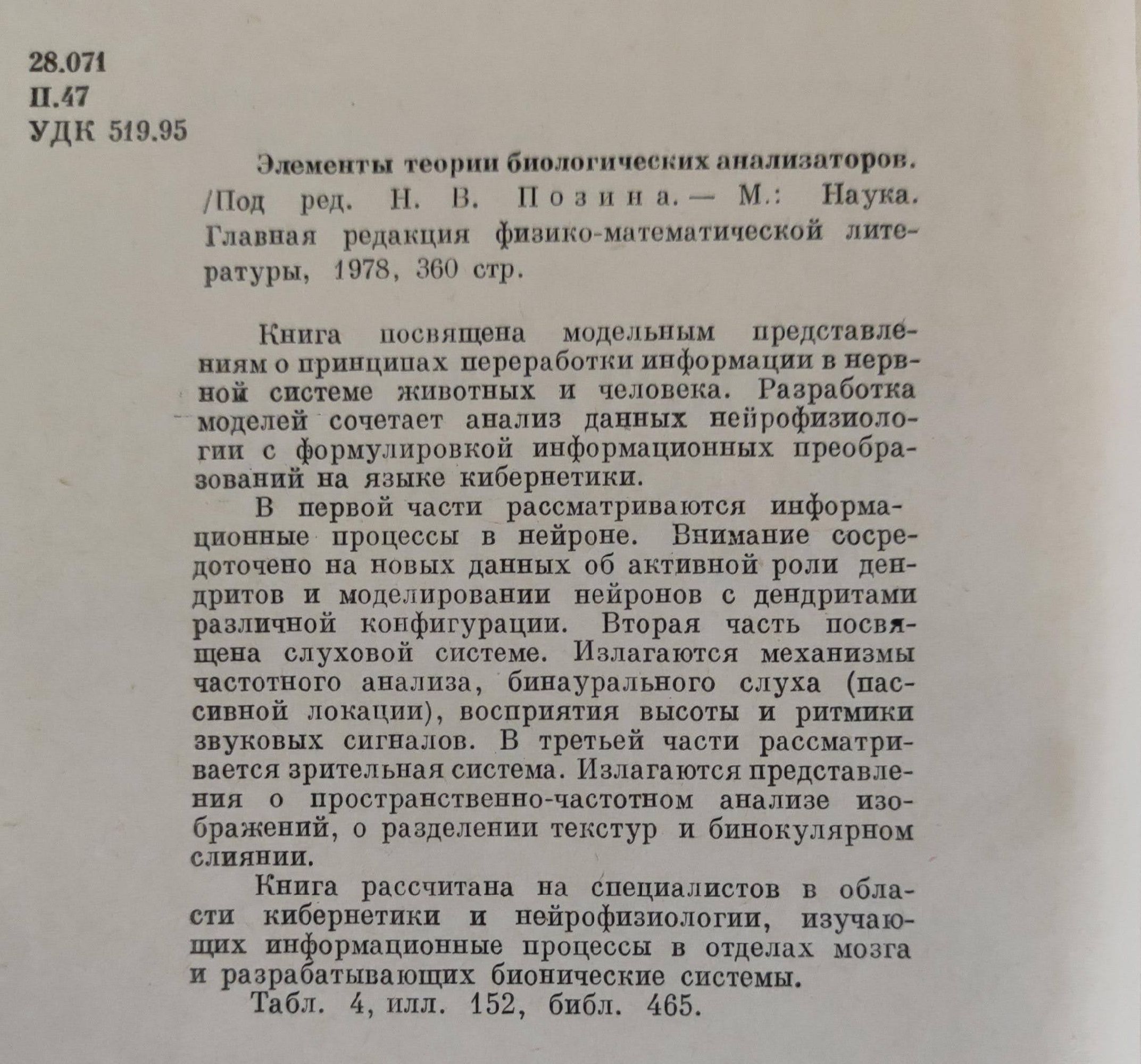 Элементы теории биологических анализаторов