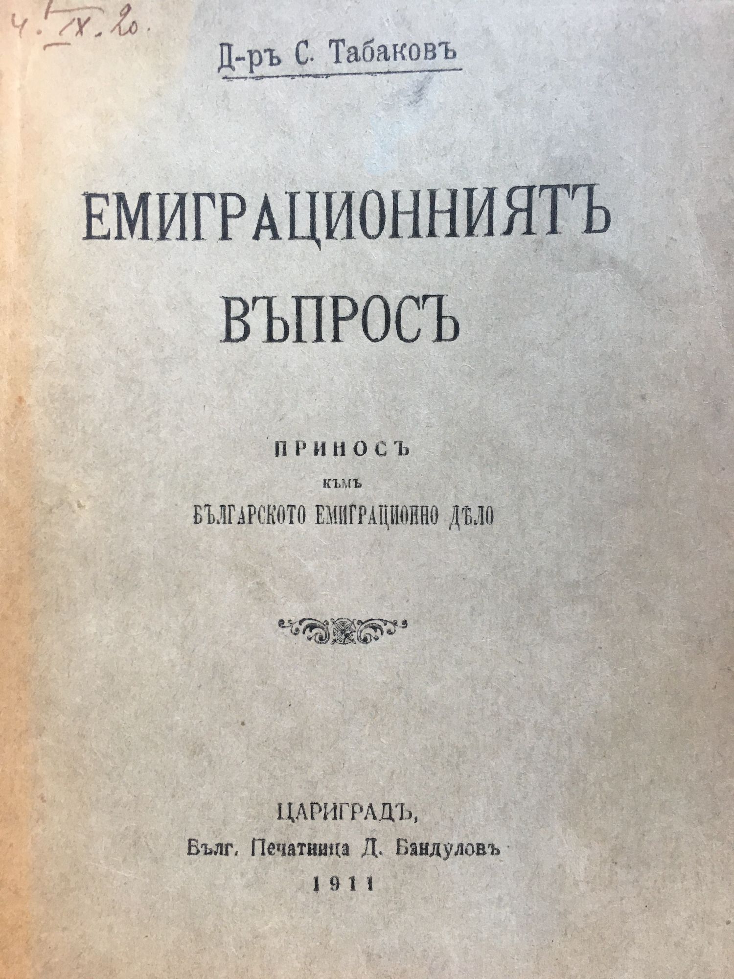 Емиграционниятъ въпросъ / Емиграционният въпрос