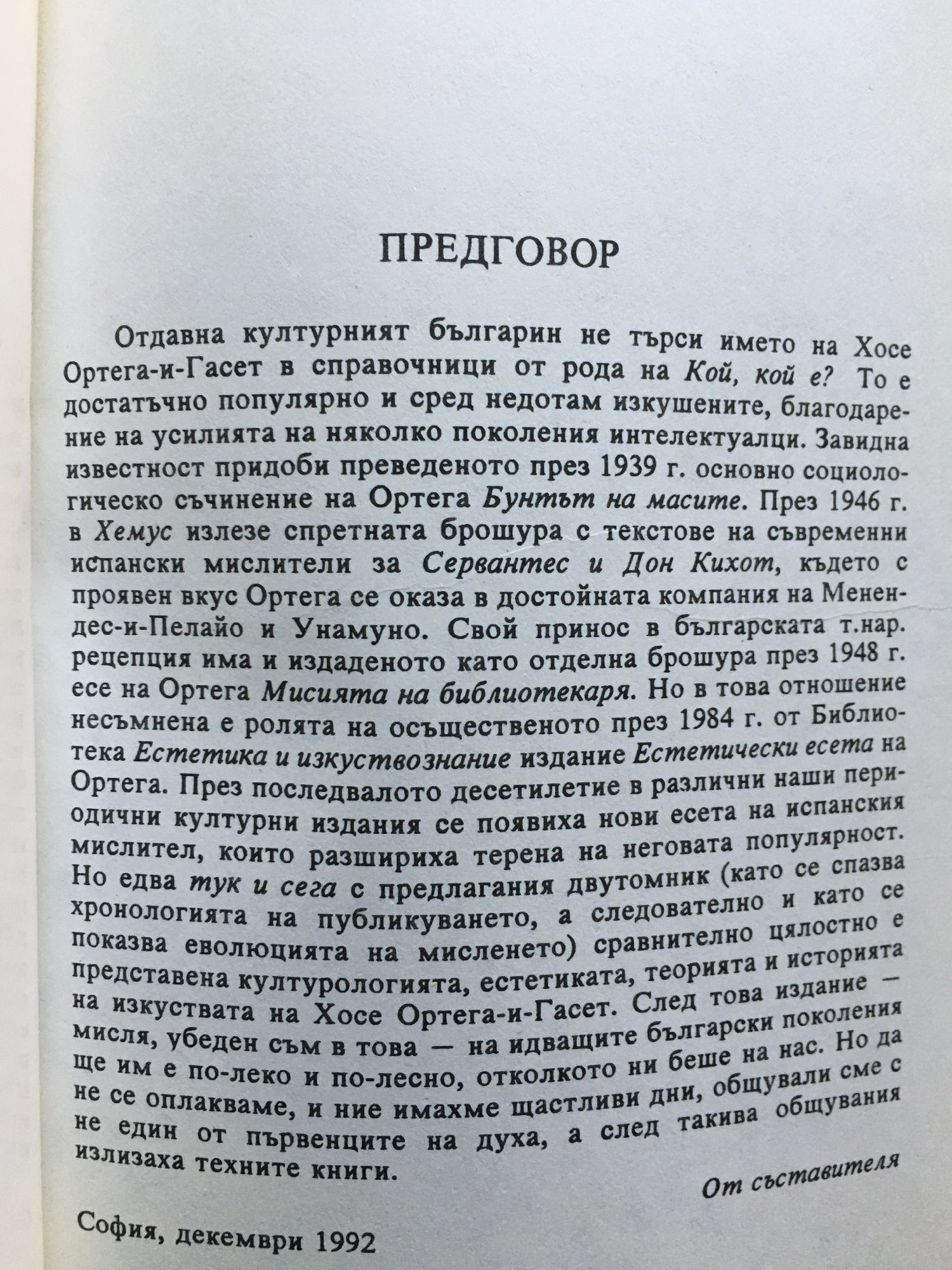 от Хосе Ортега-и-Гасет