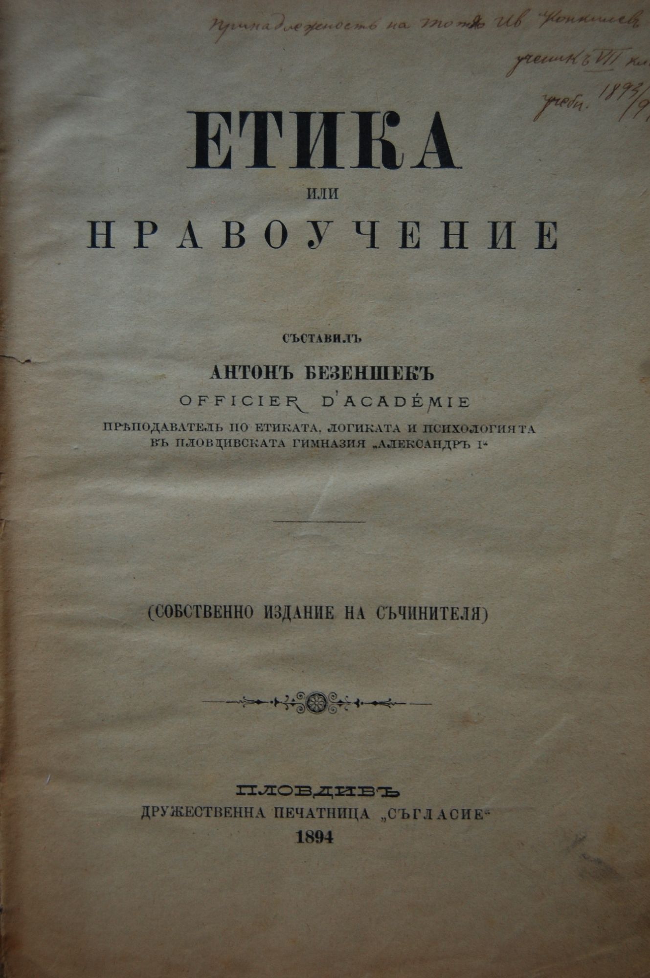 Първият български учебник по Етика.