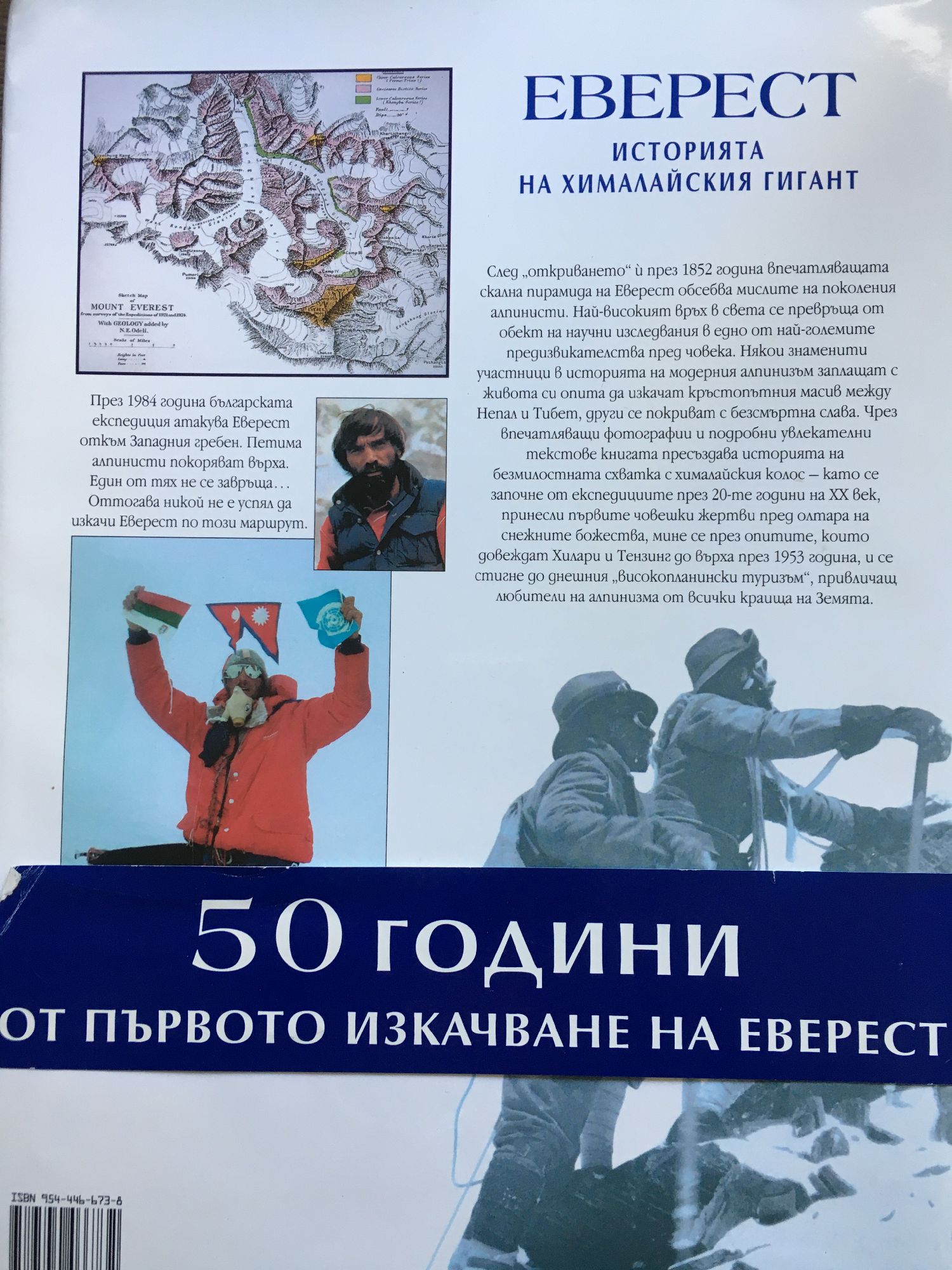 През 1984 година българската експедиция атакува Еверест откъм Западния гребен. Петима алпинисти покоряват върха. Един от тях не се завръща... Оттогава никой не е успял да изкачи Еверест по този маршрут. След “откриването” й през 1852 година впечатляващата скална пирамида на Еверест обсебва мислите на поколения алпинисти. Най-високият връх в света се превръща от обект на научни изследвания в едно от най-големите предизвикателства пред човека. Някои знаменити участници в историята на модерния алпинизъм заплащат с живота си опита да изкачат кръстопътния масив между Непал и Тибет, други се покриват с безсмъртна слава. Чрез впечатляващи фотографии и подробни увлекателни текстове книгата пресъздава историята на безмилостната схватка с хималайския колос – като се започне от експедициите през 20-те години на XX век, принесли първите човешки жертви пред олтара на снежните божества, мине се през опитите, които довеждат Хилари и Тензинг до върха през1953 година, и се стигне до днешния “високопланински туризъм”, привличащ любители на алпинизма от всички краища на Земята.