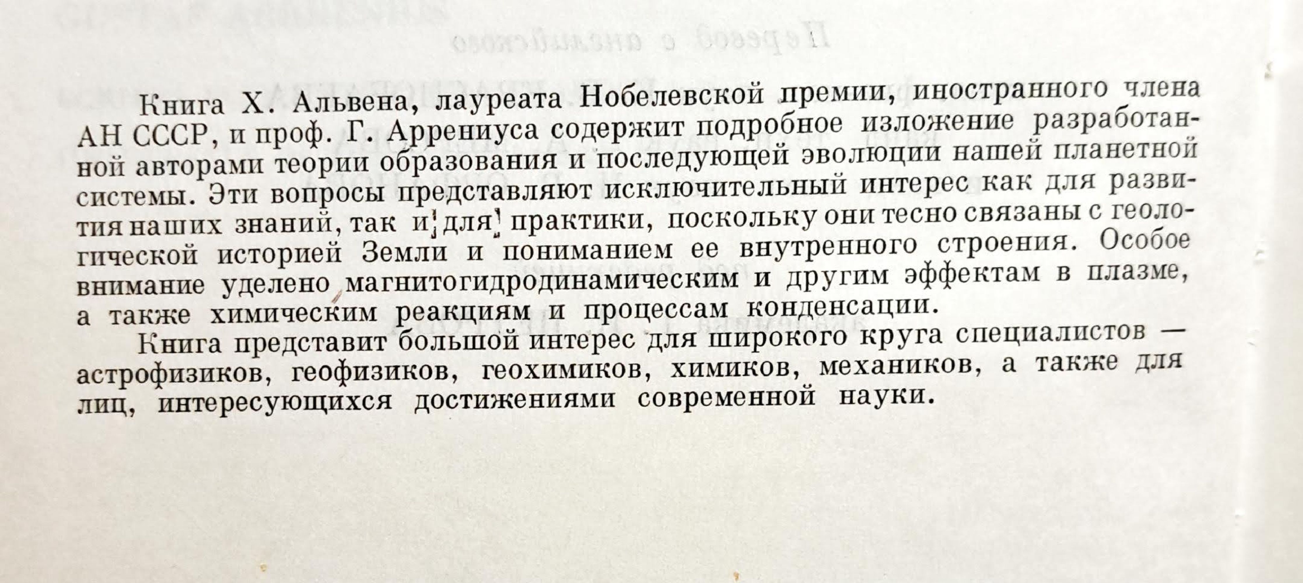 от Х. Альвен, Г. Аррениус