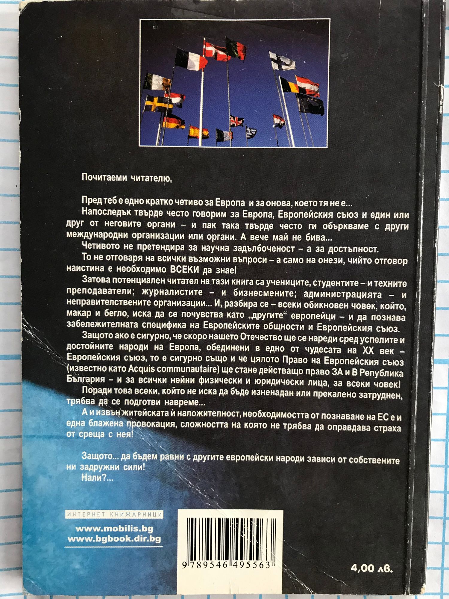Насоящето издание представлява едно кратко четиво за Европа и за онова, което тя не е... Защото твърде често напоследък по един или друг повод говорим за Европейския съюз и неговите органи, а твърде рядко успяваме да ги разграничим от други международни организации и техните органи. Четивото не претендира за научна задълбоченост а за достъпност. То не отговаря на всички възможни въпроси а само на онези, отговора на които наистина е необходимо ВСЕКИ да знае. Затова потенциален читател на тази книга са всички ученици и учители, журналистите и бизнесмените, администрацията и НПО и разбира се, всеки обикновен човек, който иска да се почувства като обикновен европеец, който макар и бегло познава забележителната специфика на Европейските общности и Европейския съюз.