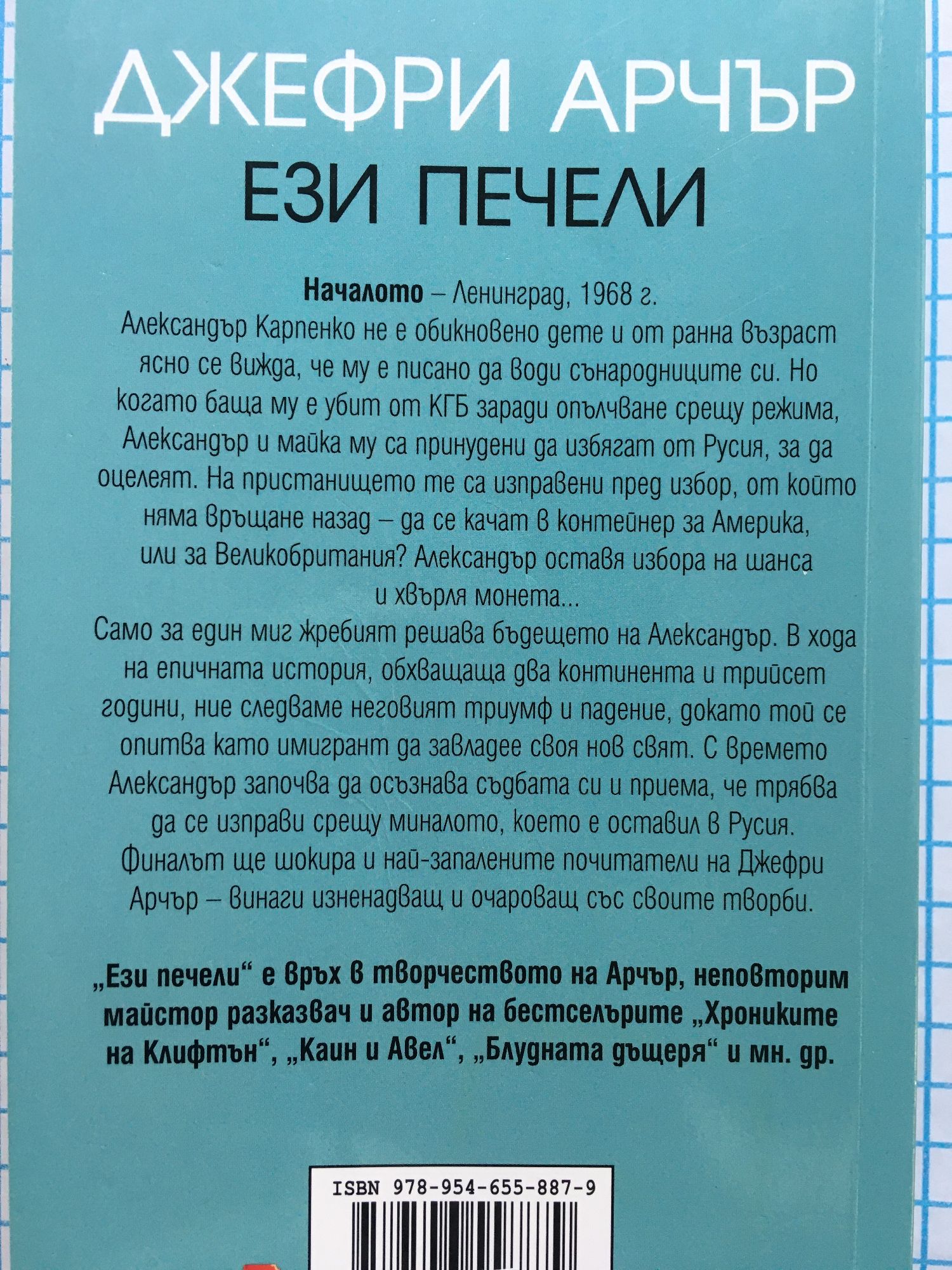 Началото – Ленинград, Русия, 1968 г. Александър Карпенко не е обикновено дете и от ранна възраст ясно се вижда, че му е писано да води сънародниците си. Но когато баща му бива убит от КГБ заради опълчване срещу режима, Александър и майка му са принудени да избягат от Русия, за да оцелеят. На пристанището те са изправени пред избор, от който няма връщане назад – да се качат в контейнер или за Америка, или за Великобритания. Александър оставя избора на шанса и хвърля монета... Само за един миг хвърлянето решава бъдещето на Александър. В хода на епичната история за участ и успех, обхващаща два континента и трийсет години, ние следваме неговите триумфи и падения, докато той се опитва като имигрант да завладее своя нов свят. С времето Александър започва да осъзнава къде е съдбата му и приема, че трябва да се изправи срещу миналото, което е оставил в Русия. С един последен обрат, който ще шокира и най-запалените почитатели на автора, този роман е най-амбициозната и оригинална творба на Джефри Арчър от „Каин и Авел“ насам. Най-амбициозната и оригинална творба на Джефри Арчър от "Каин и Авел" насам!