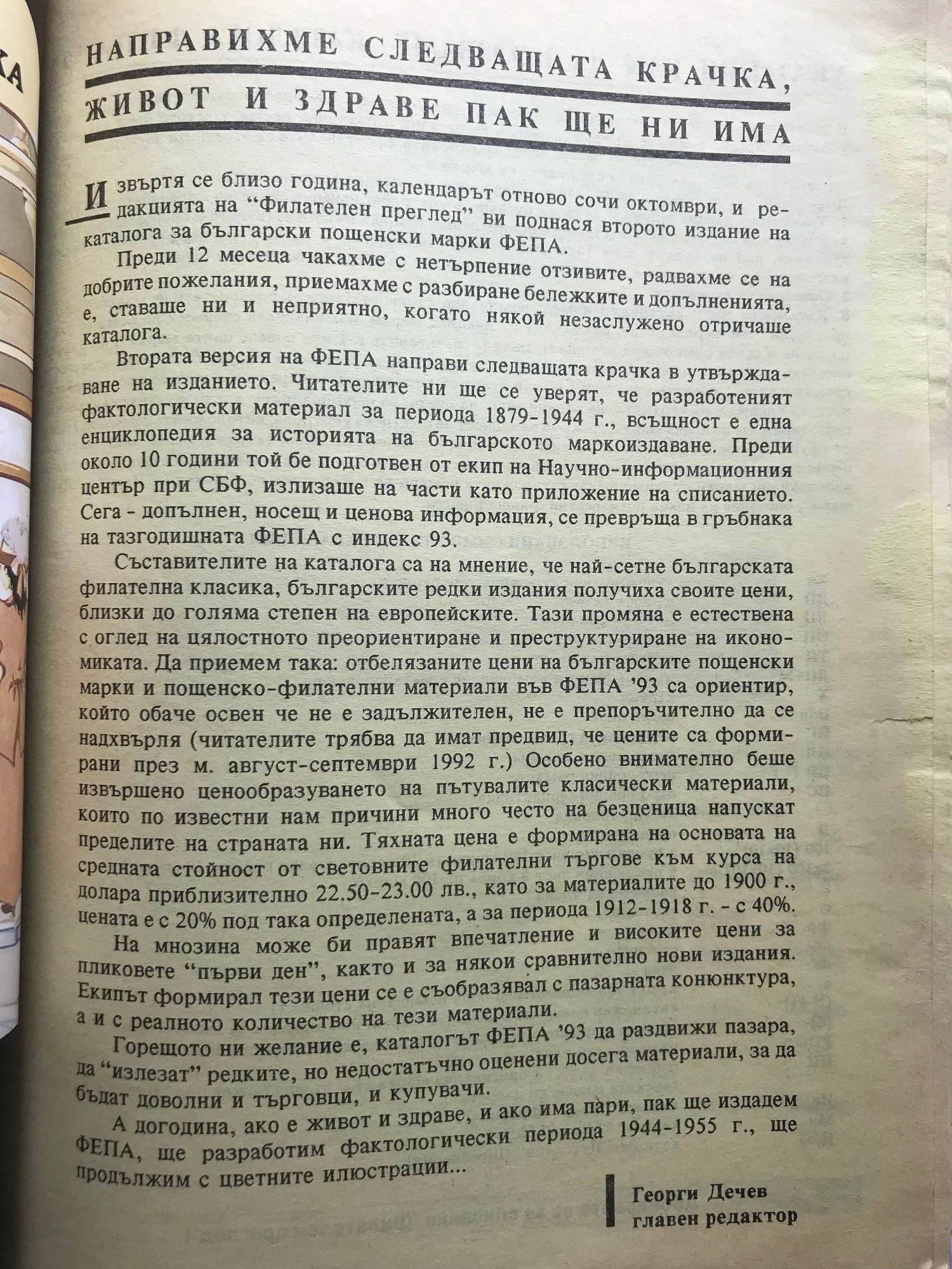 Каталог на българските пощенски марки Фепа'93