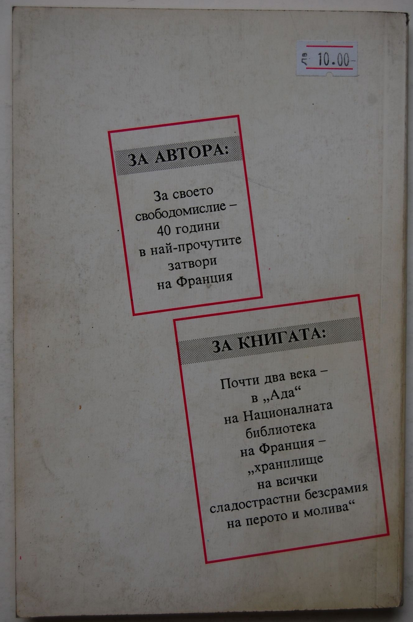 5,11 € / 9,99 лв.Отлично състояние на книжното тяло.