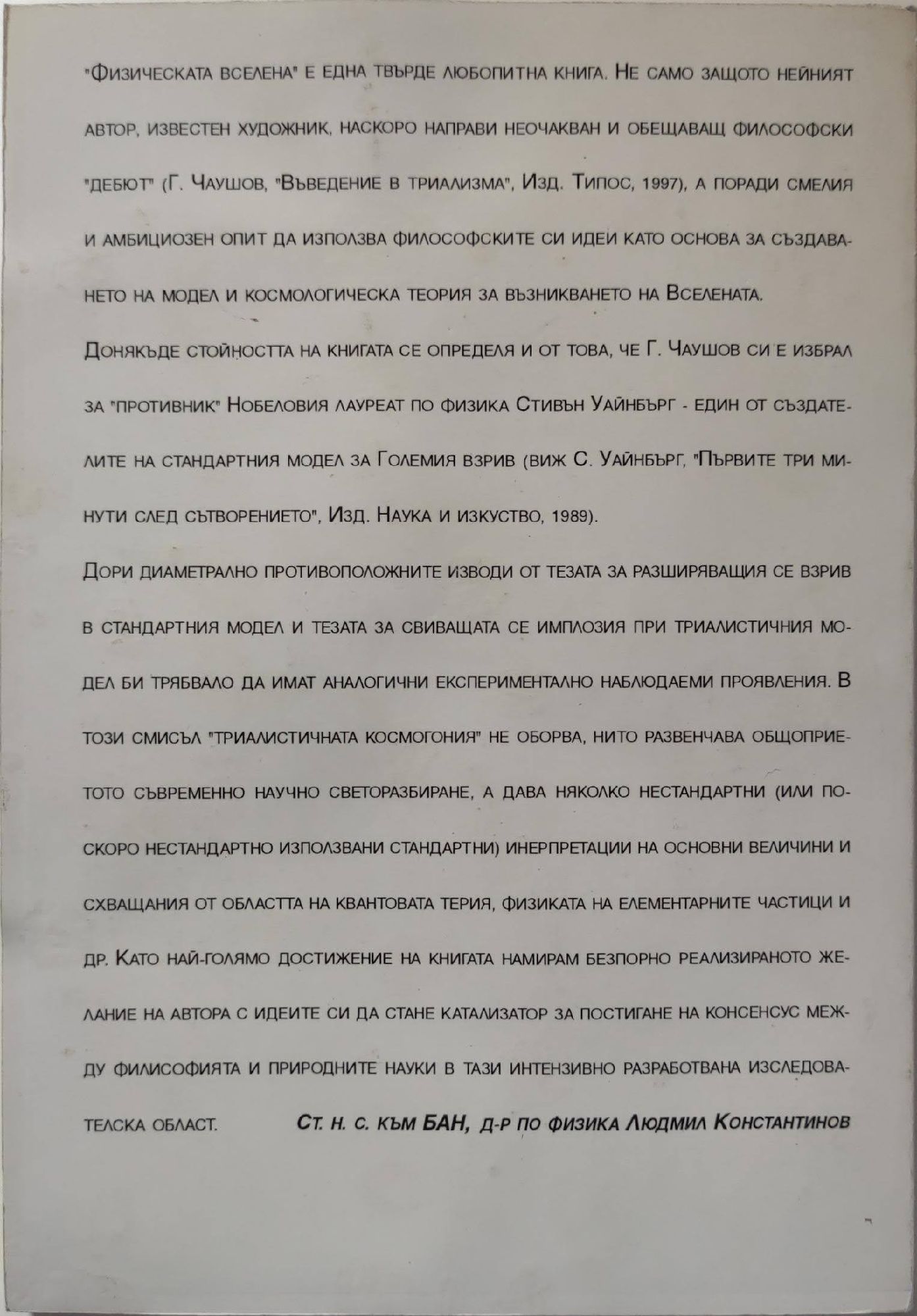 Един модел и космологична теория, обосновани във философския възглед, наречен триализъм