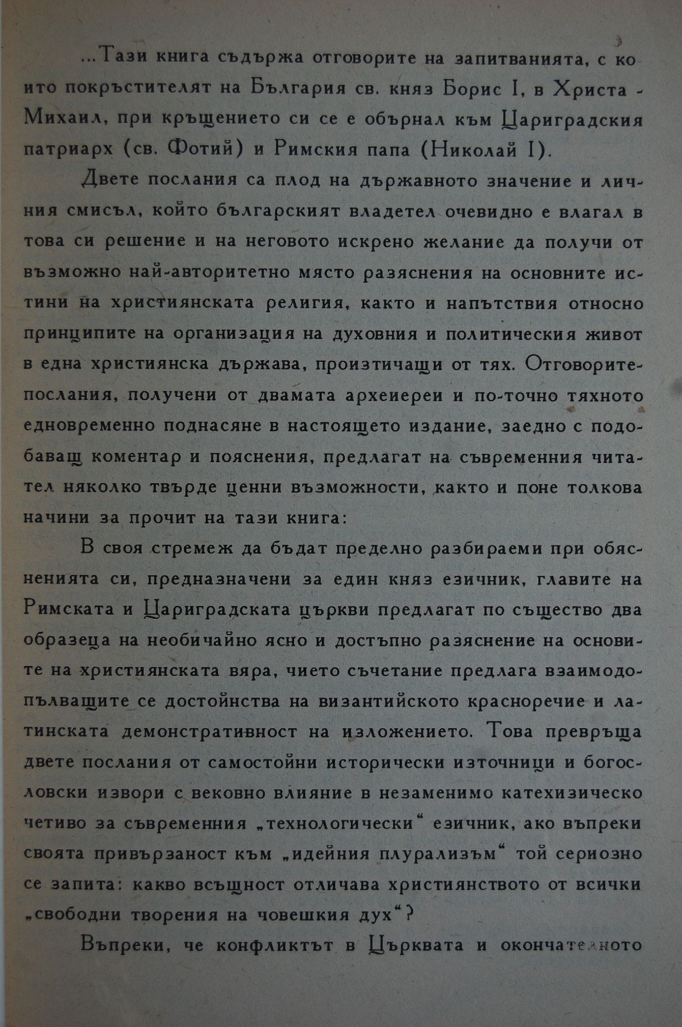 Фотий патриархъ Константинополски до князъ Борисъ