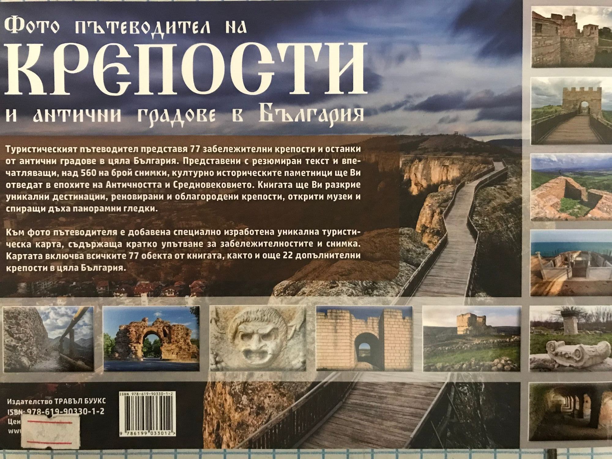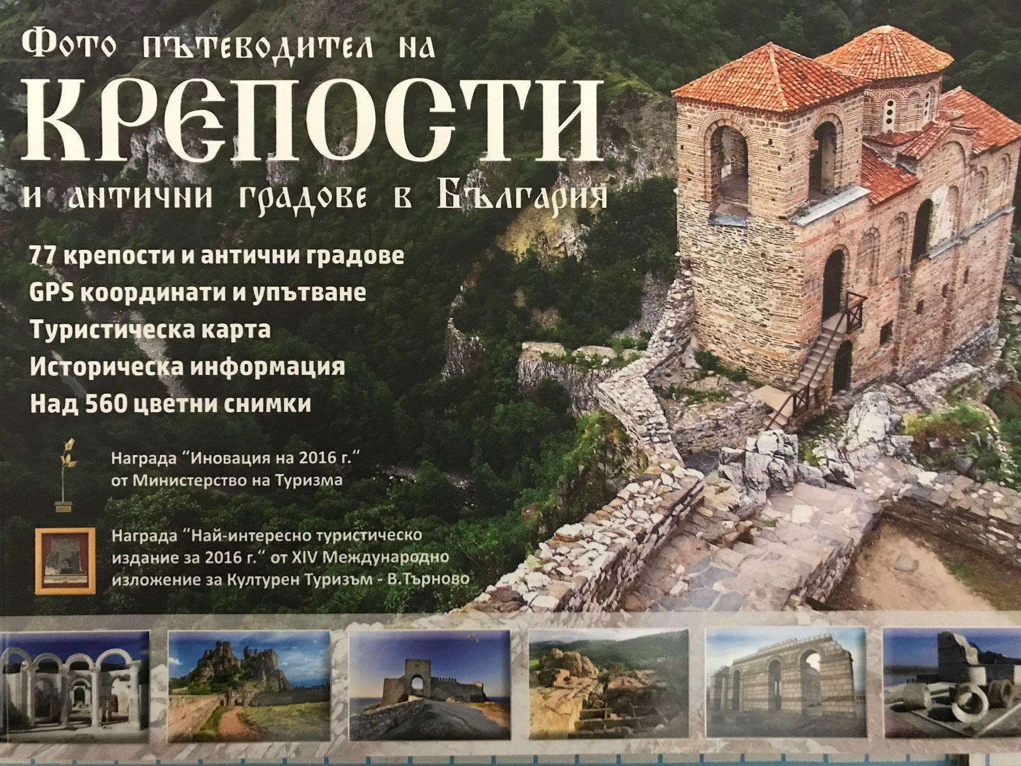 Туристическият пътеводител представя 77 забележителни крепости и останки от антични градове в цяла България. Представени с резюмиран исторически текст и впечатляващи, над 560 на брой снимки, културно историческите паметници ще Ви отведат в епохите на Античността и Средновековието. Книгата ще Ви разкрие уникални дестинации, реновирани и облагородени крепости, открити музеи и спиращи дъха панорамни гледки. Към фото пътеводителя е добавена специално изработена, уникална туристическа карта, съдържаща кратко упътване за забележителностите и снимка. Картата включва всичките 77 обекта от книгата, както и още 22 допълнителни крепости в цяла България. За по-лесно намиране с GPS и смартфон е добавен QR код към всеки обект, който съдържа данните на географските координати и прави зареждането им и навигирането до обекта бързо и лесно.