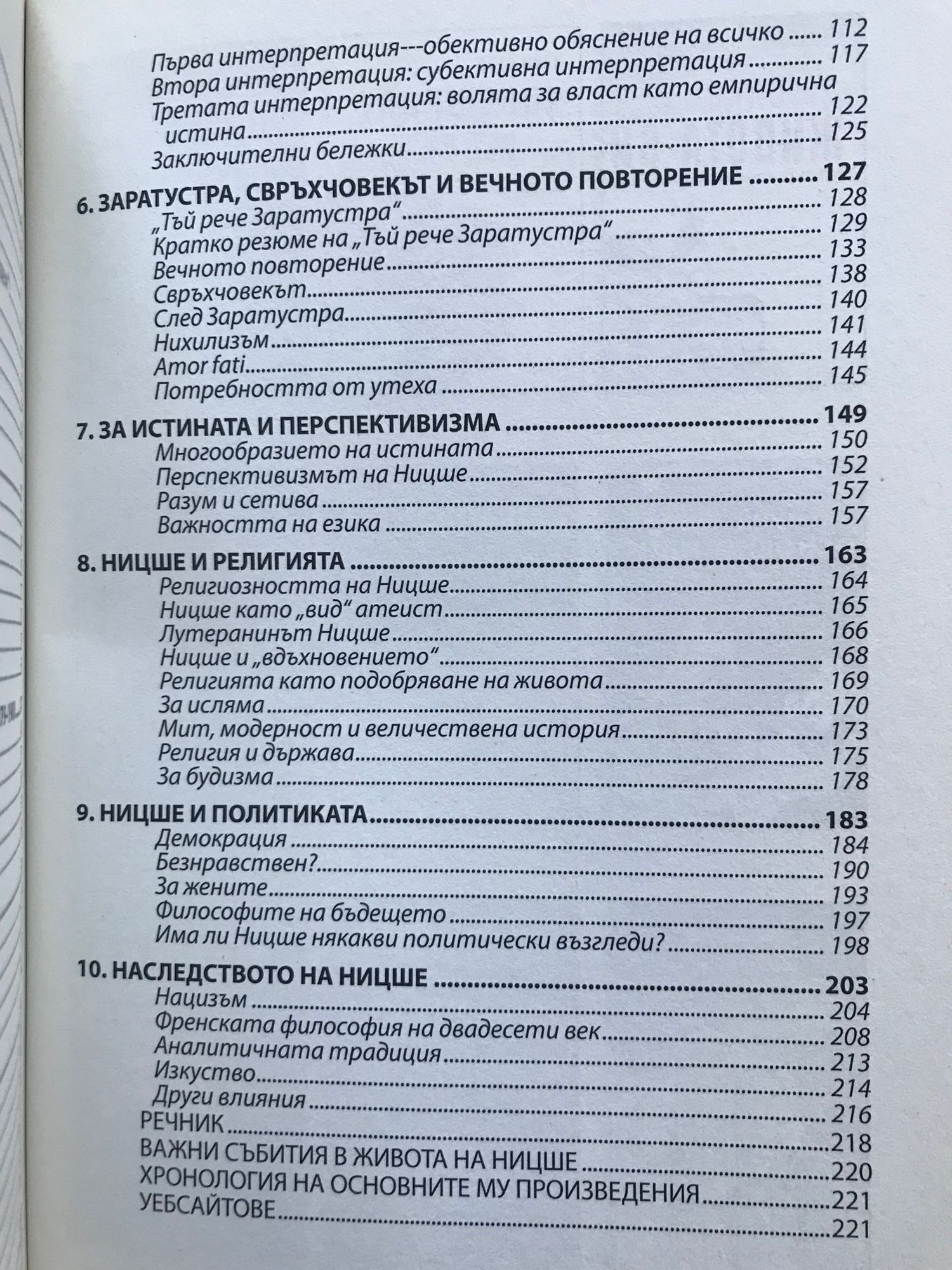 Немският философ Фридрих Ницше 1844 - 1900 е навярно най-четеният философ на света днес, но той също така е и най-малко разбраният. Приносът му във философията включва декларацията, че Бог е мъртъв, и следствията, което има това моралната философия. Тук Ницше атакува религиозната вяра, както и убедеността в обективните ценности или истини. Ние трябва да изберем основните си ценности. Смъртта на Бог оставя човека свободен да се превърне в човек според своите разбирания, да стане свръхчовек. Свръхчовекът е човек, който реализира потенциала на човешкото същество и не се възпира от вярата в отвъден живот. За Ницше свръхчовекът е израз на способността на хората да използват това, което той нарича воля за власт. Тази неясна концепция предполага, че сме способни да контролираме и насочваме вътрешните си подтици, което е форма на самоовластяване. Освен това отликата на свръхчовека от останалите, от стадото, е способността да ръководи живота си, дори ако това означава, че той или тя ще трябва да живее същия живот отново и отново. Това е ницшеанската концепция за вечното повторение - мислен експеримент, предназначен да изпита готовността на индивида и желанието му за самоутвърждение. Такива прочути философи, като Жан-Пол Сартр, Албер Камю и Мишел Фуко, са повлияни от неговите идеи и методология. Извън философията психологическите му прозрения повлияват на вкусовете на Карл Юнг, а стилът му и ученията му въздействат на писатели и художници, сред които са Юджийн О'Нийл, Милан Кундера, Томас Ман, Никос Казандзакис и Марк Ротко.