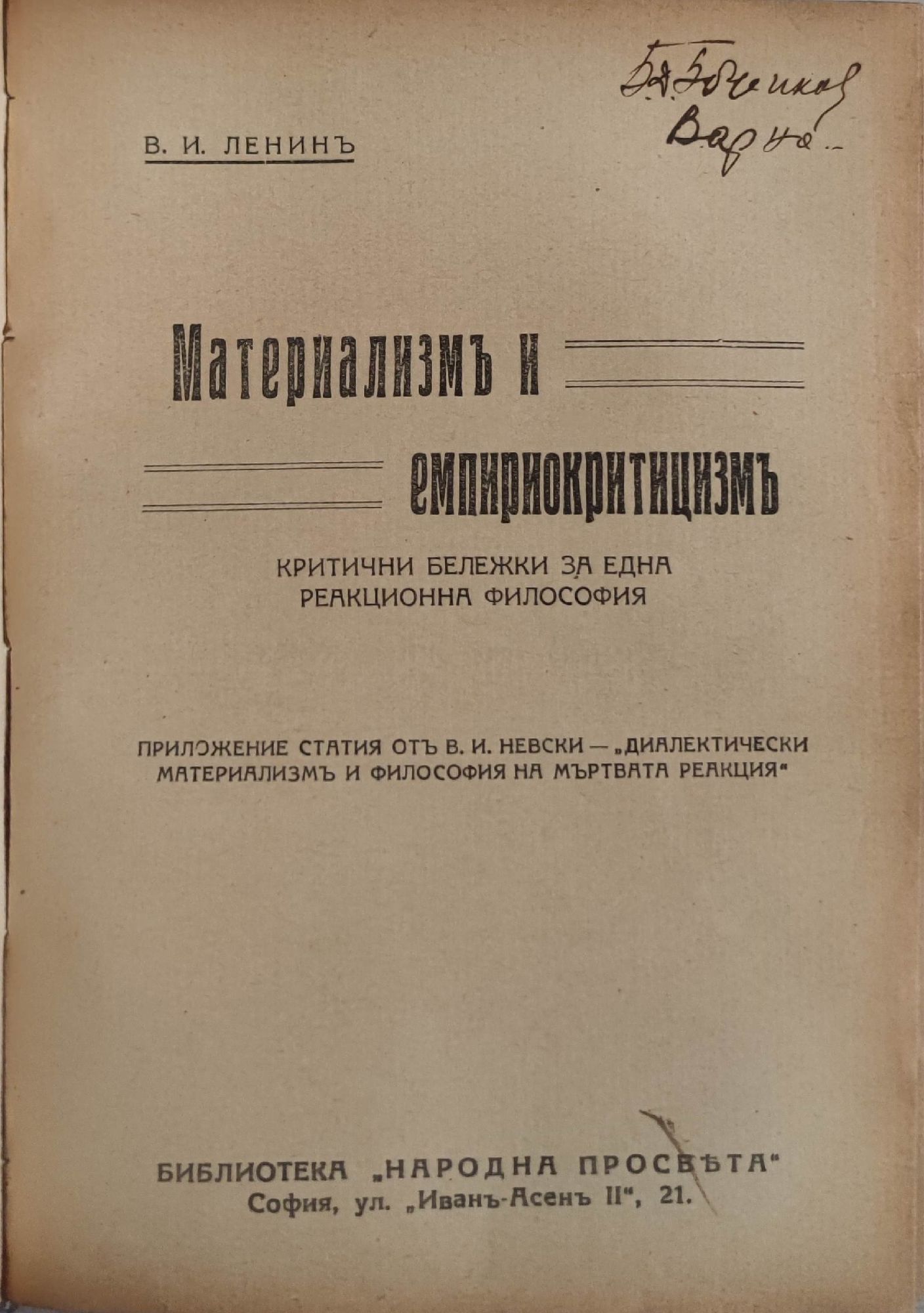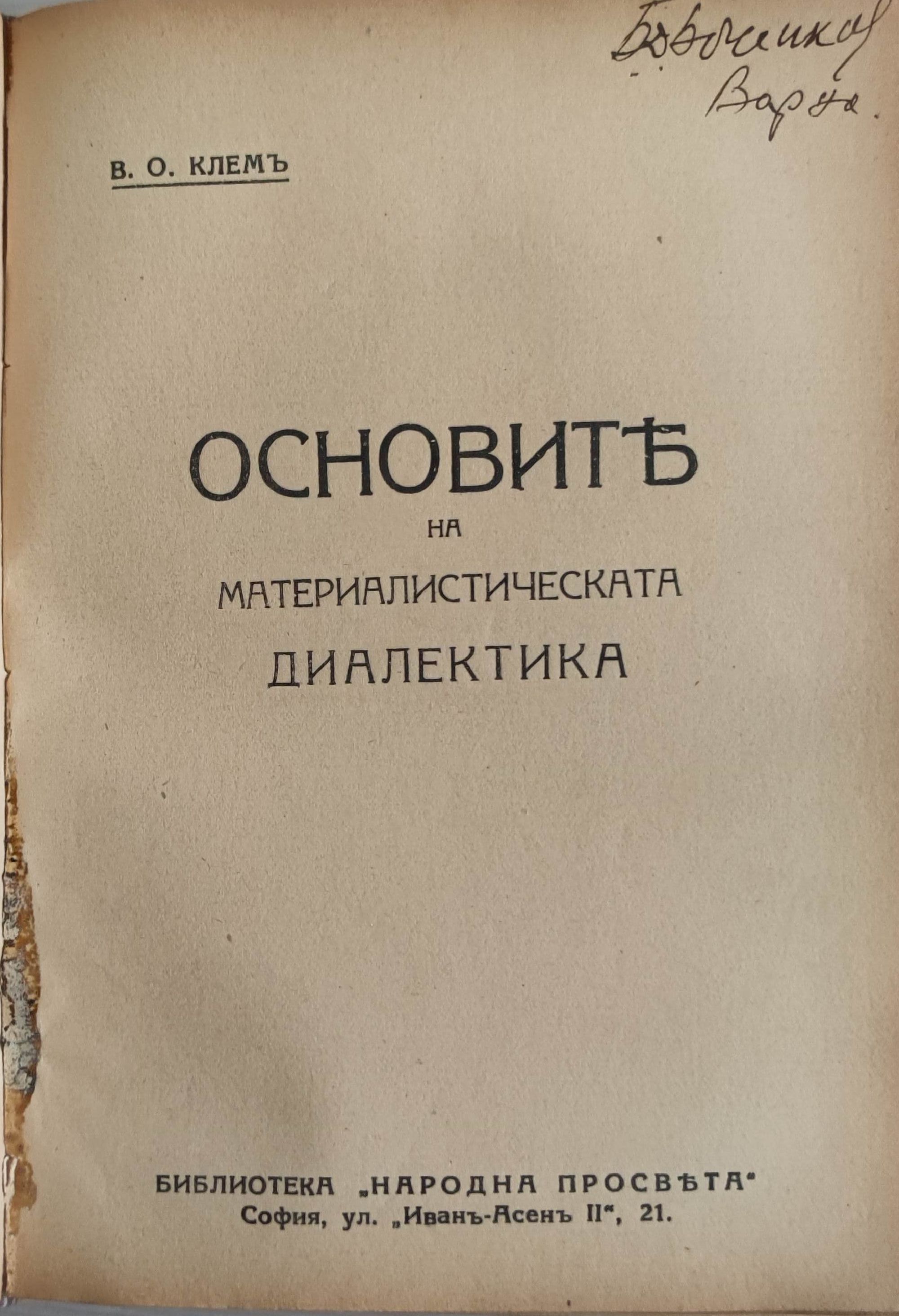 Фройдизъмъ (психоанализа). Критически очеркъ/ Основите на материалистическата диалектика/ Беседи съ учителя по философия/ Материализъмъ и емпириокритицизмъ