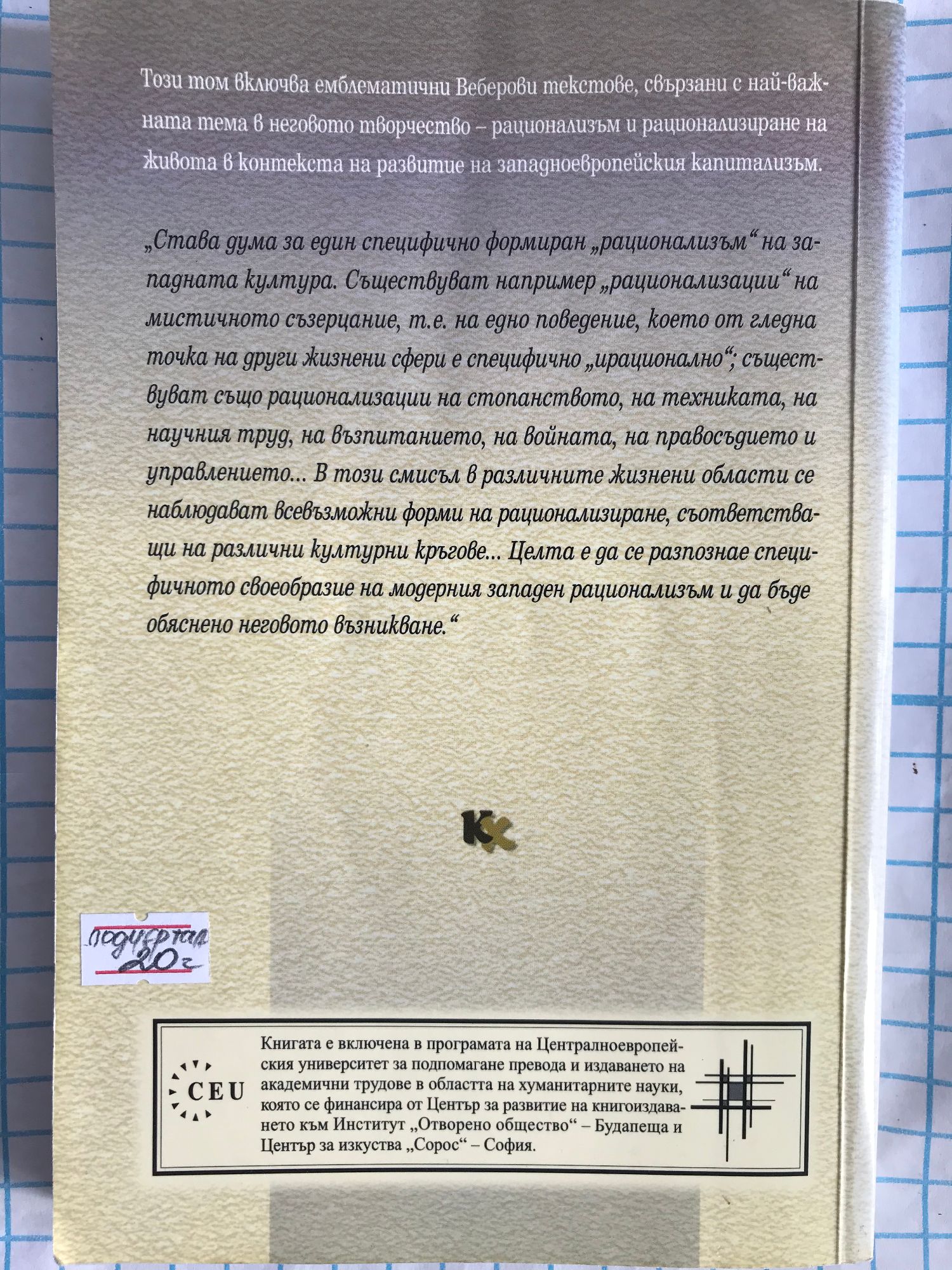 Този том включва емблематични Вебероби текстове, свързани с най-важната тема в неговото творчество - рационализъм и рационализиране на живота в контекста на развитие на западноевропейския капитализъм.