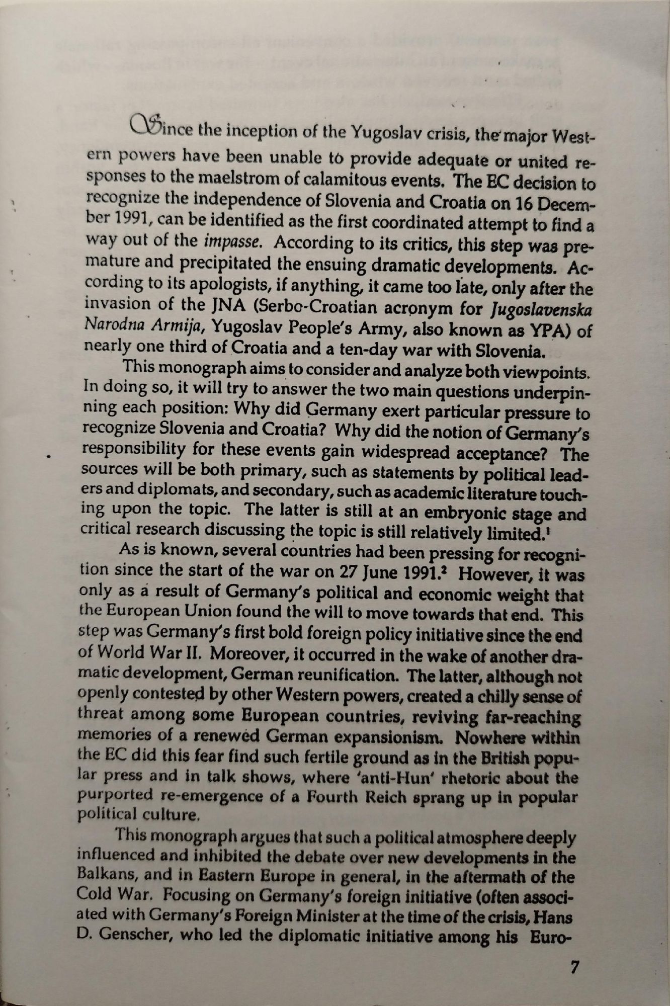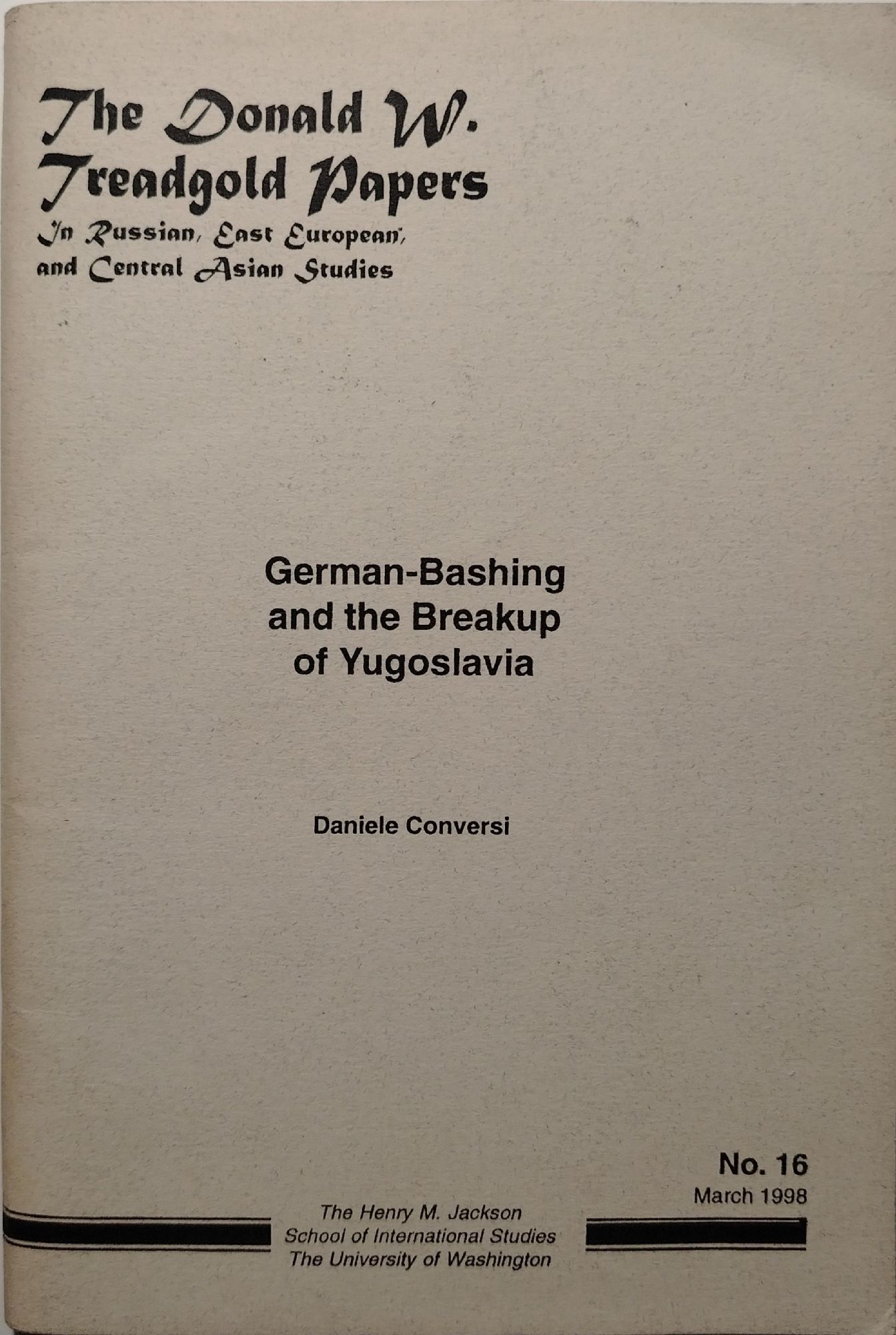 German - Bashing and the Breakup of Yugoslavia