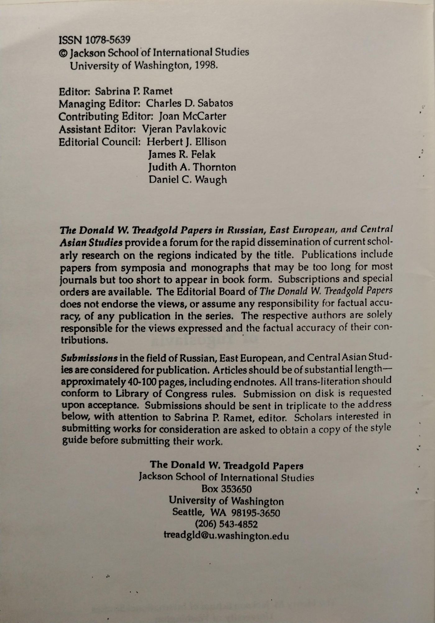 поредица The Donald W. Treadgold Papers