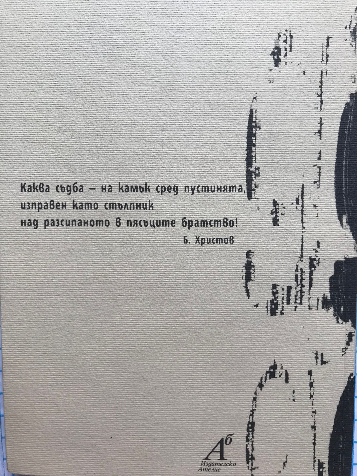 Каква съдба - на камък сред пустинята, изправен като стълпник над разсипаното в пясъците братство! Борис Христов