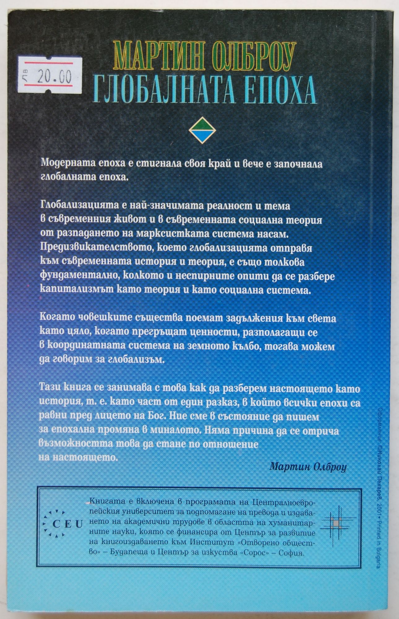11,00 лв. / 5,62 €Много добро състояние на книжното тяло. С малки забележки по корицата. Пожълтели страници, няколко с подчертаване с флумастер в средата на книгата.