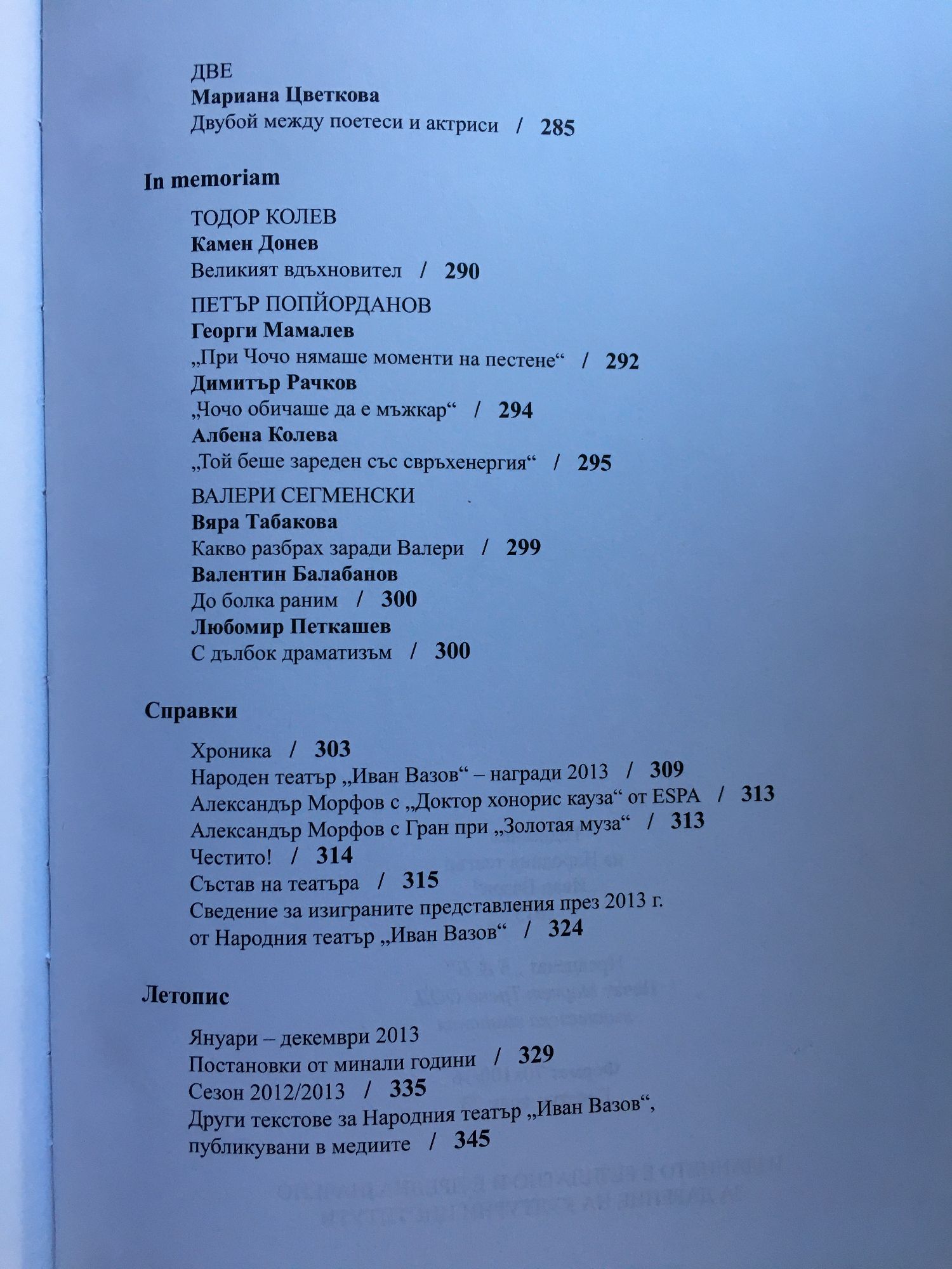 Годишник на Народния театър "Иван Вазов" 2013