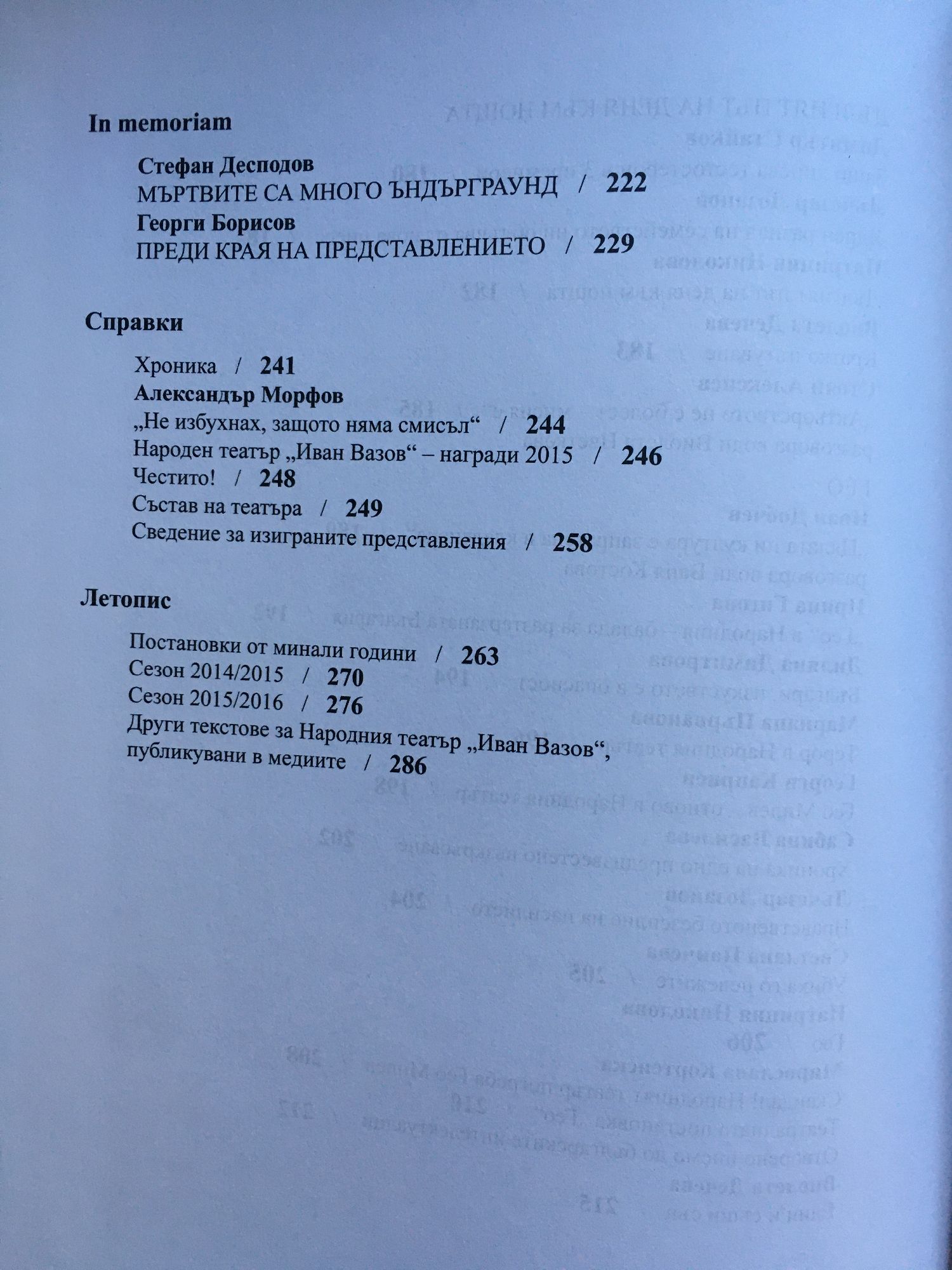Годишник на Народния театър "Иван Вазов" 2015