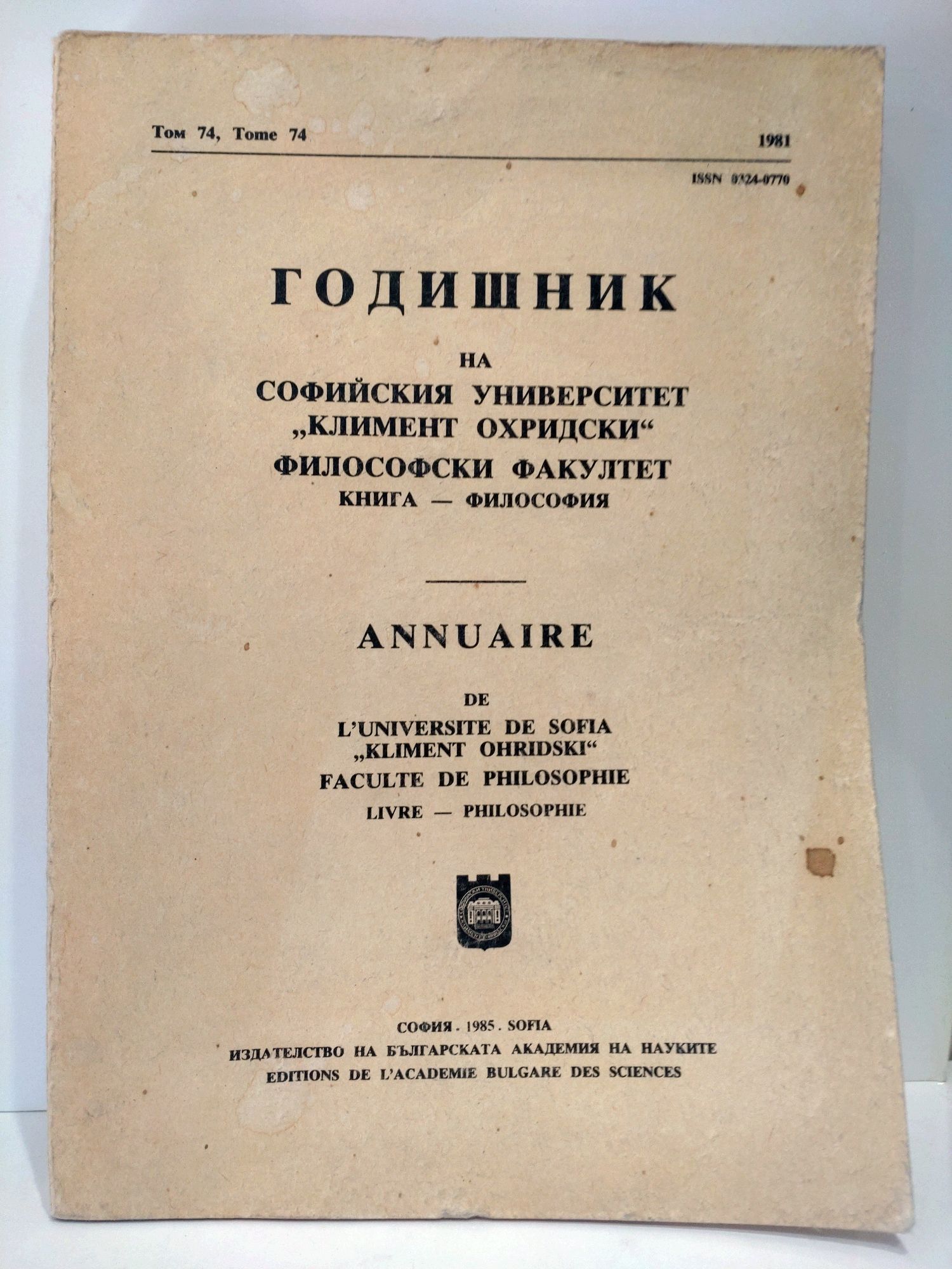 Философски факултет, книга - философия, том 74 / 1981