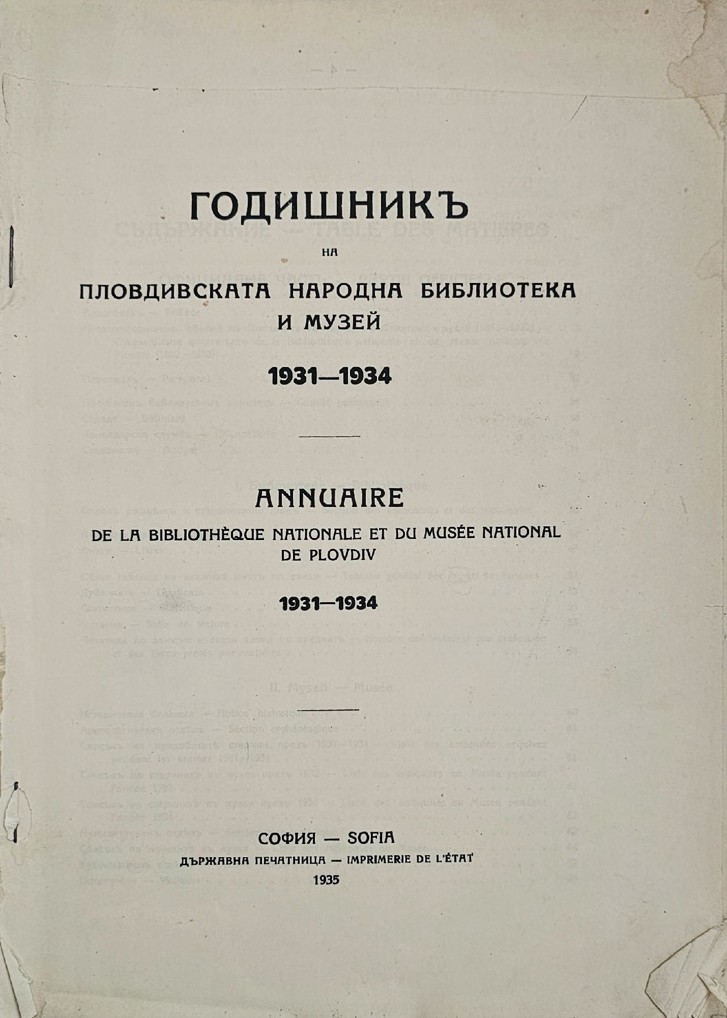 Годишникъ на Пловдивската народна библиотека и музей 1931-1934
