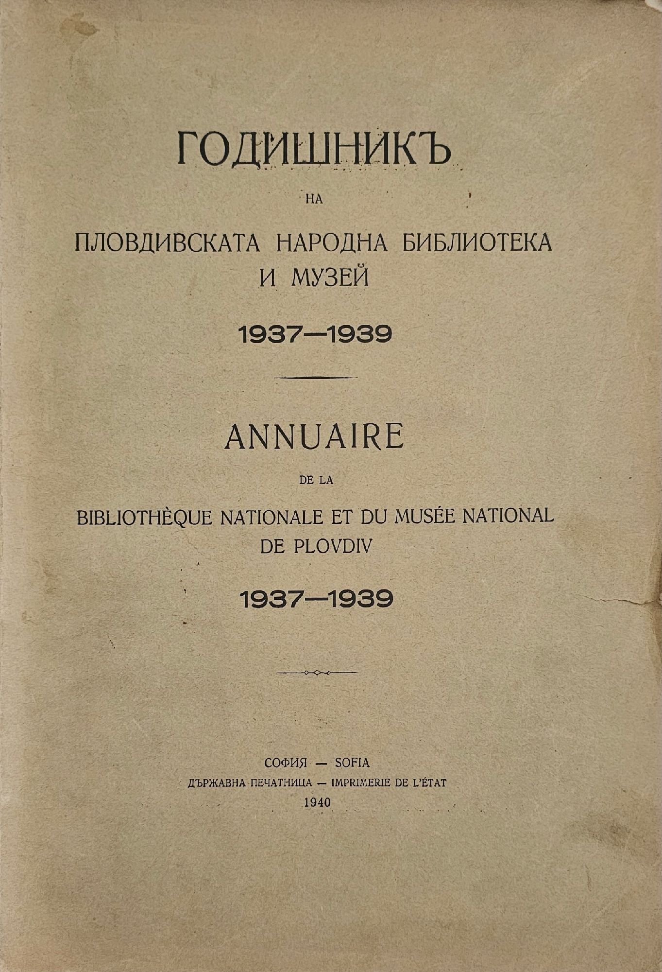 Годишникъ на Пловдивската народна библиотека и музей 1937-1939