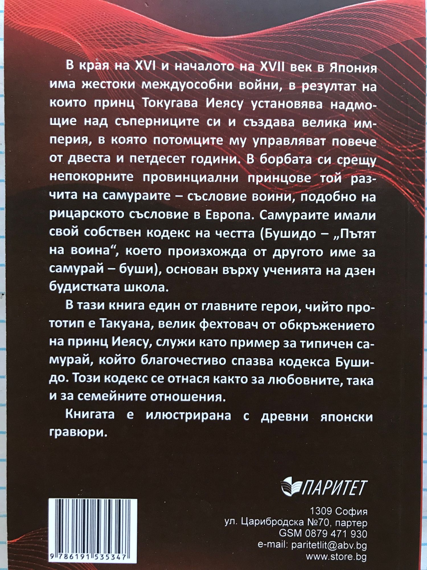 В края на XVI и началото на XVII век в Япония има жестоки междуособни войни, в резултат на които принц Токугава Иеясу установява надмощие над съперниците си и създава велика империя, в която потомците му управляват повече от двеста и петдесет години. В борбата си срещу непокорните провинциални принцове той разчита на самураите - съсловие воини, подобно на рицарското съсловие в Европа. Самураите имали свой собствен кодекс на честта (Бушидо - Пътят на воина, което произхожда от другото име за самурай - буши), основан върху ученията на дзен будистката школа. В тази книга един от главните герои, чийто прототип е Такуана, велик фехтовач от обкръжението на принц Иеясу, служи като пример за типичен самурай, който благочестиво спазва кодекса Бушидо. Този кодекс се отнася както за любовните, така и за семейните отношения. Книгата е илюстрирана с древни японски гравюри.