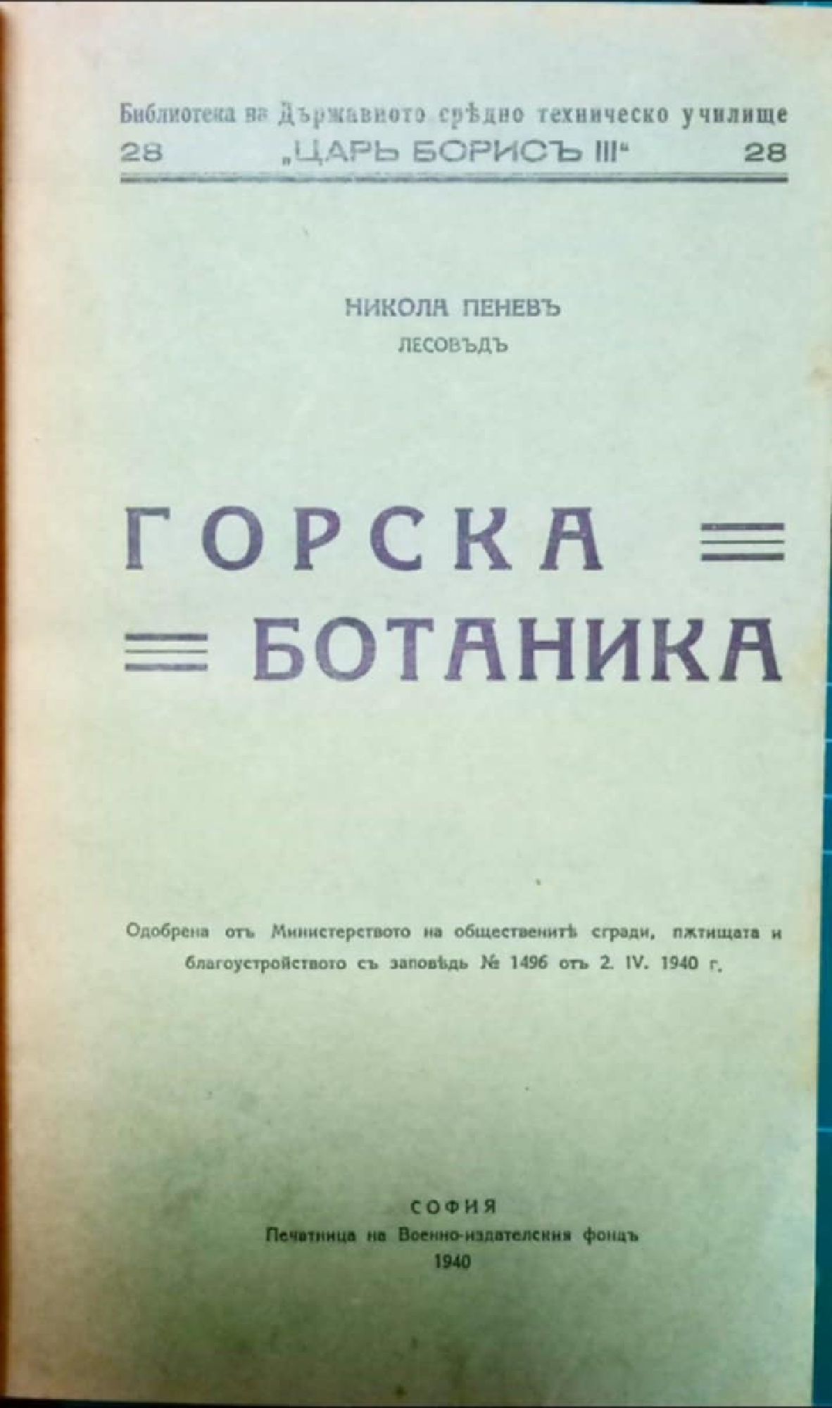 Конволют от три книги на тема лесовъдство: 1. Никола Пенев. Горскa ботаника. С., 1940, 228 с., 2. Х. М. Исаченко. Лесовъдствени свойства на главните и второстепенни дървесни видове за създаване държавни полезащитни пояси. С., 1950, 128 с. 3. Димитър Стефанов. Лесозащита. Опазване на горските разсадници, културите и полезащитните пояси от болести и вредители. С. 1949, 152 с.