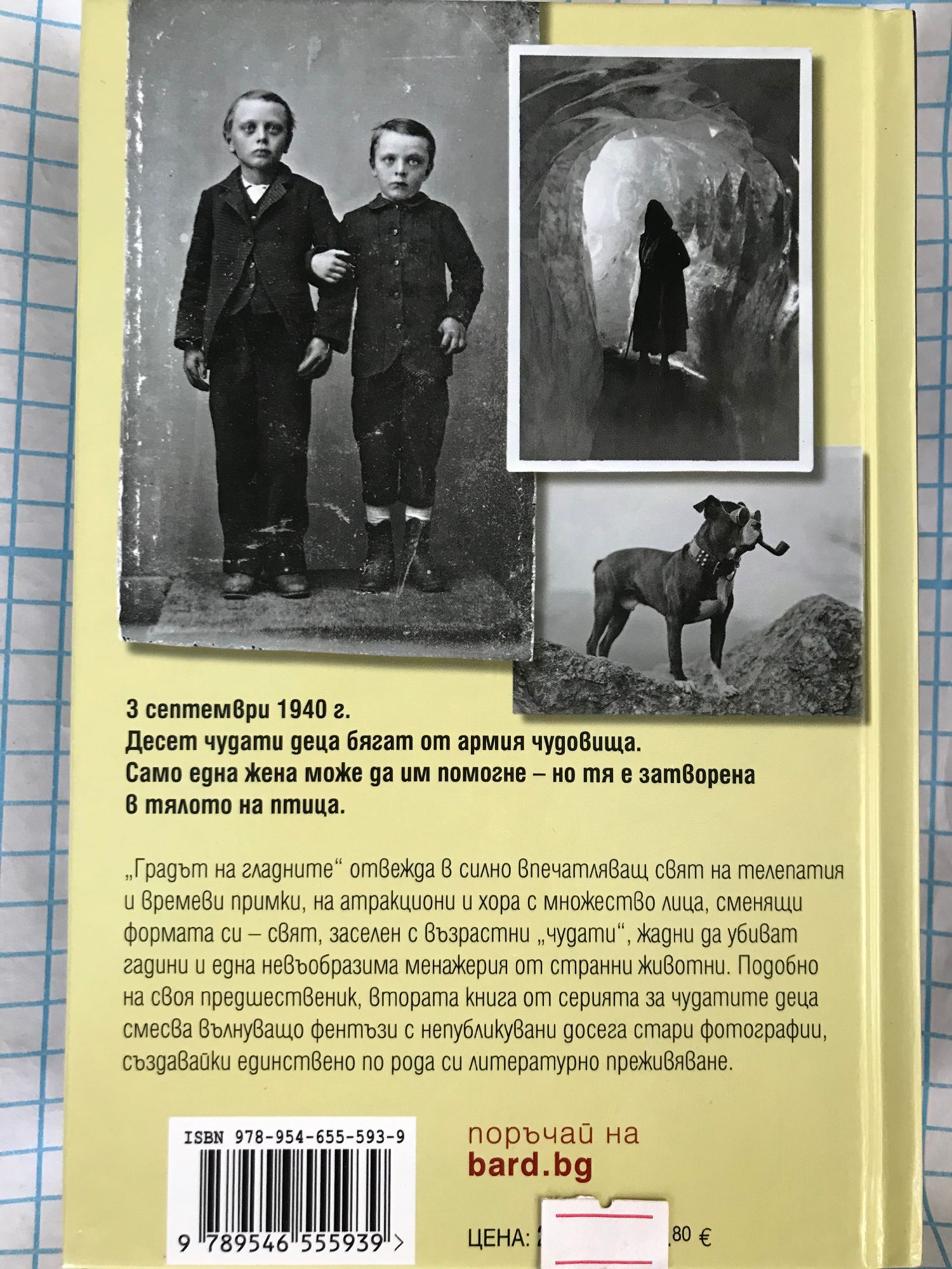 3 септември 1940 г. Десет чудати деца бягат от армия чудовища. Само една жена може да им помогне – но тя е затворена в тялото на птица. „Градът на гладните“ отвежда в силно впечатляващ свят на телепатия и времеви примки, на атракциони и хора с множество лица, сменящи формата си – свят, заселен с възрастни „чудати“, жадни да убиват гадини и една невъобразима менажерия от странни животни. Подобно на своя предшественик, втората книга от серията за чудатите деца смесва вълнуващо фентъзи с непубликувани досега стари фотографии, създавайки единствено по рода си литературно преживяване.