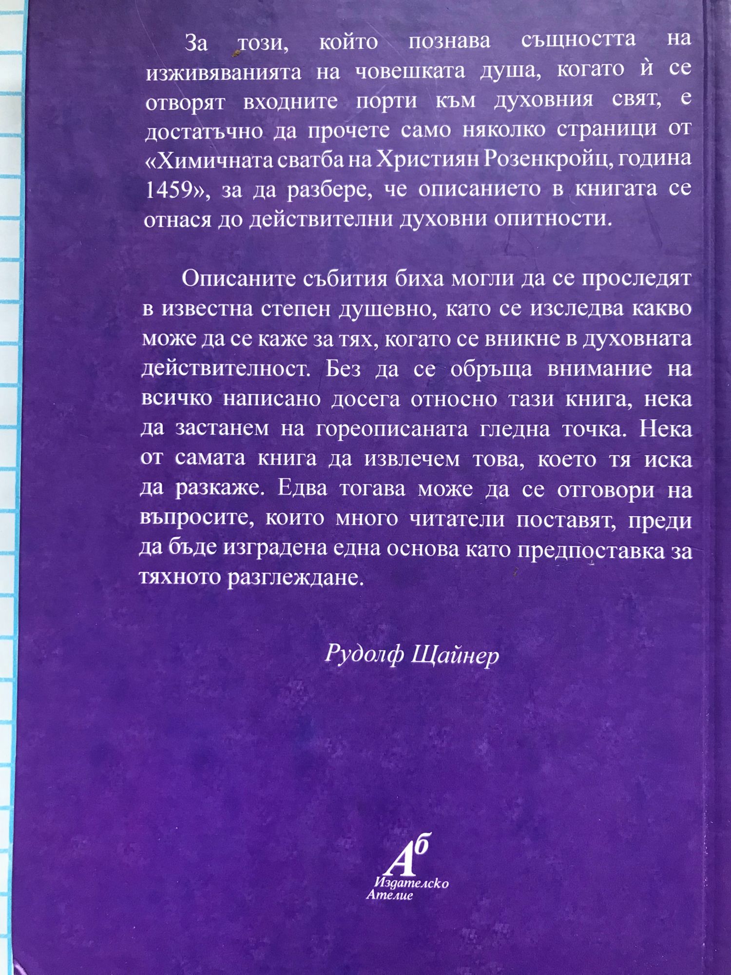 За този, който познава същността на изживяванията на човешката душа, когато й се отворят входните порти към духовния свят, е достатъчно да прочете само няколко страници от «Химичната сватба на Християн Розенкройц, година 1459», за да разбере, че описанието в книгата се отнася до действителни духовни опитности. Описаните събития биха могли да се проследят в известна степен душевно, като се изследва какво може да се каже за тях, когато се вникне в духовната действителност. Без да се обръща внимание на всичко написано досега относно тази книга, нека да застанем на гореописаната гледна точка. Нека от самата книга да извлечем това, което тя иска да разкаже. Едва тогава може да се отговори на въпросите, които много читатели поставят, преди да бъде изградена една основа като предпоставка за тяхното разглеждане. Рудолф Щайнер