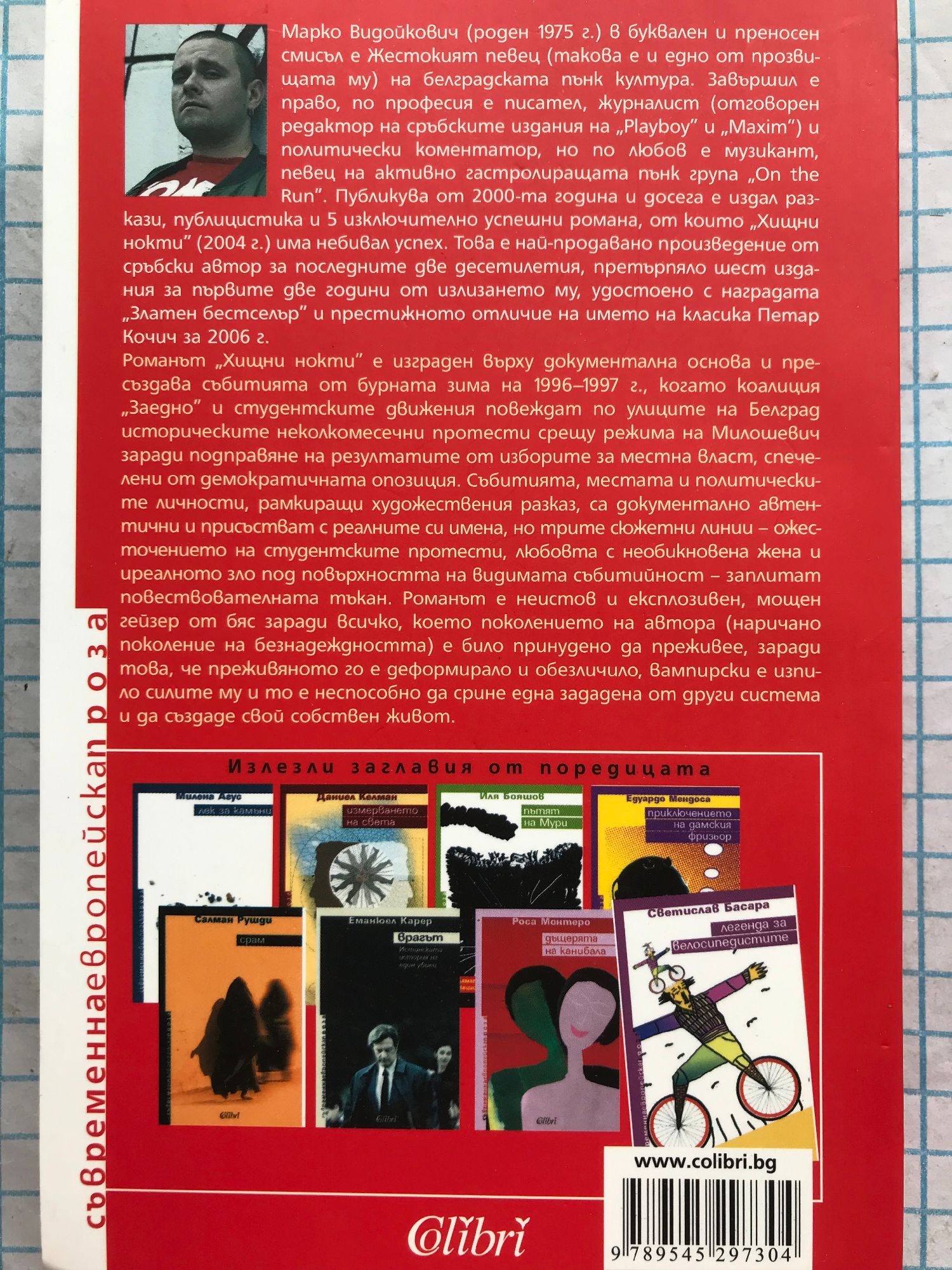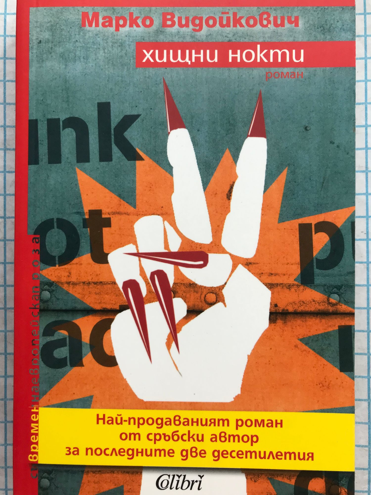 Романът „Хищни нокти” е изграден върху документална основа и пресъздава събитията от бурната зима на 1996 - 1997 г., когато коалиция „Заедно” и студентските движения повеждат по улиците на Белград историческите неколкомесечни протести срещу режима на Милошевич заради подправяне на резултатите от изборите за местна власт, спечелени от демократичната опозиция. Събитията, местата и политическите личности, рамкиращи художествения разказ, са документално автентични и присъстват с реалните си имена, но трите сюжетни линии – ожесточението на студентските протести, любовта с необикновена жена и иреалното зло под повърхността на видимата събитийност – заплитат повествователната тъкан. Романът е неистов и експлозивен, мощен гейзер от бяс заради всичко, което поколението на автора (наричано поколение на безнадеждността) е било принудено да преживее, заради това, че преживяното го е деформирало и обезличило, вампирски е изпило силите му и то е неспособно да срине една зададена от други система и да създаде свой собствен живот. Марко Видойкович (роден 1975 г.) в буквален и преносен смисъл е Жестокият певец (такова е и едно от прозвищата му) на белградската пънк култура. Завършил е право, по професия е писател, журналист (отговорен редактор на сръбските издания на „Playboy” и „Maxim”) и политически коментатор, но по любов е музикант, певец на активно гастролиращата пънк група „On the Run”. Публикува от 2000-та година и досега е издал разкази, публицистика и 5 изключително успешни романа, от които „Хищни нокти” (2004 г.) има небивал успех. Това е най-продавано произведение от сръбски автор за последните две десетилетия, претърпяло шест издания за първите две години от излизането му, удостоено с наградата „Златен бестселър” и престижното отличие на името на класика Петар Кочич за 2006 г.