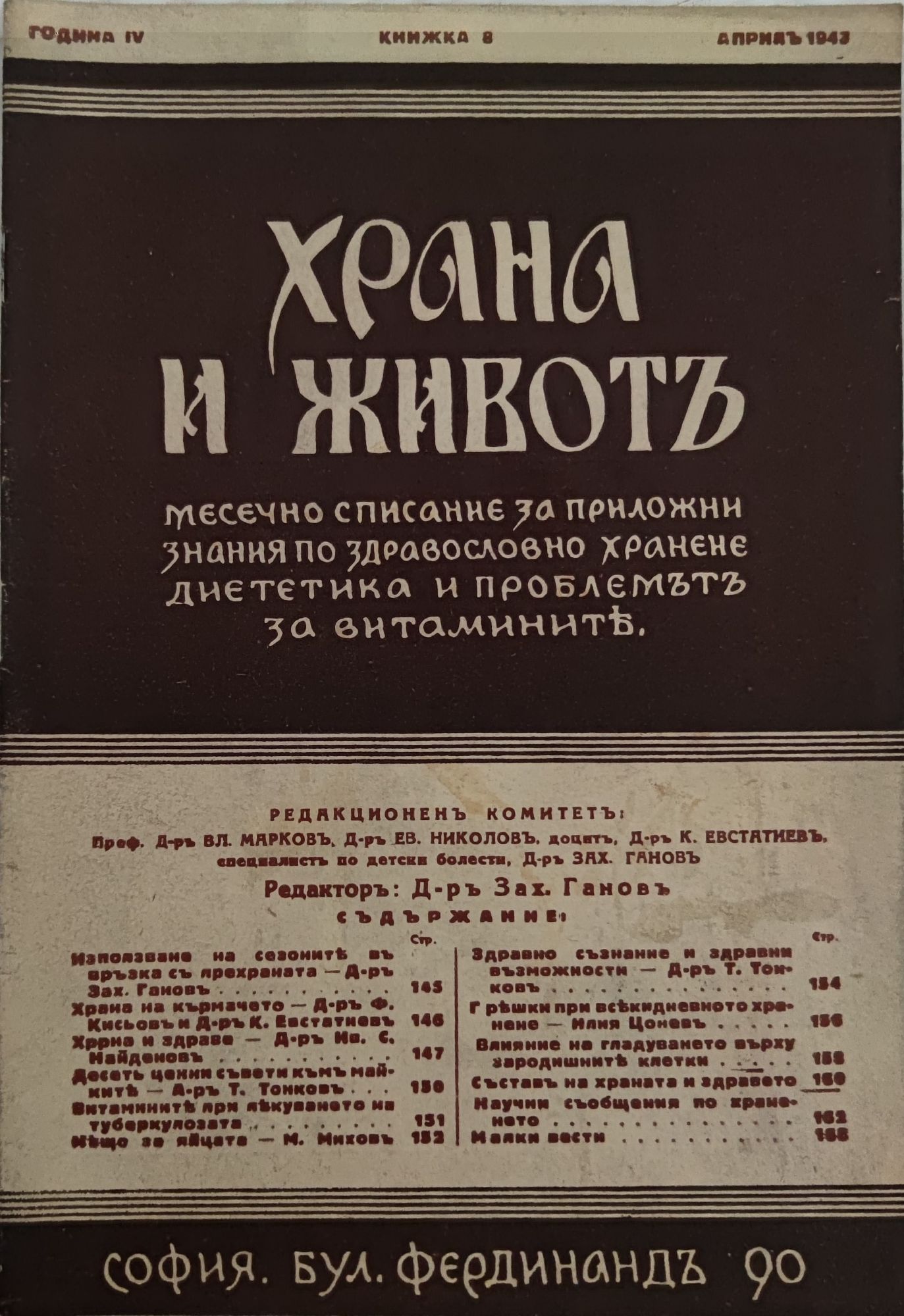Храна и животъ година 4, книжка 8, априлъ 1943