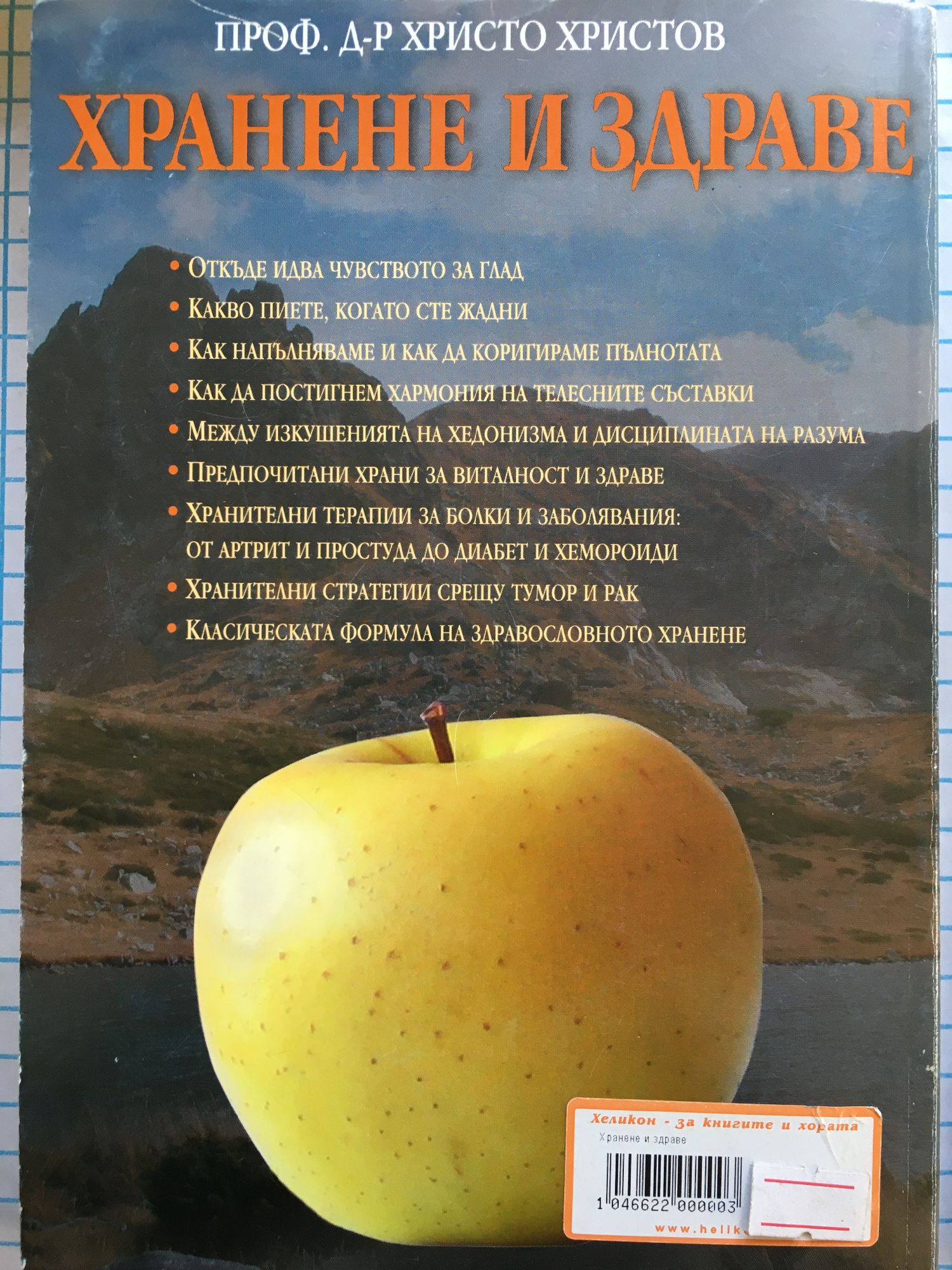Откъде идва чувството за глад Какво пиете, когато сте жадни Как напълняваме и как да коригираме пълнотата Как да постигнем хармония на телесните съставки Между изкушенията на хедонизма и дисциплината на разума Предпочитани храни за виталност и здраве Хранителни терапии за болки и заболявания: от артрит и простуда до диабет и хемороиди Хранителни стратегии срещу тумор и рак Класическата формула на здравословното хранене