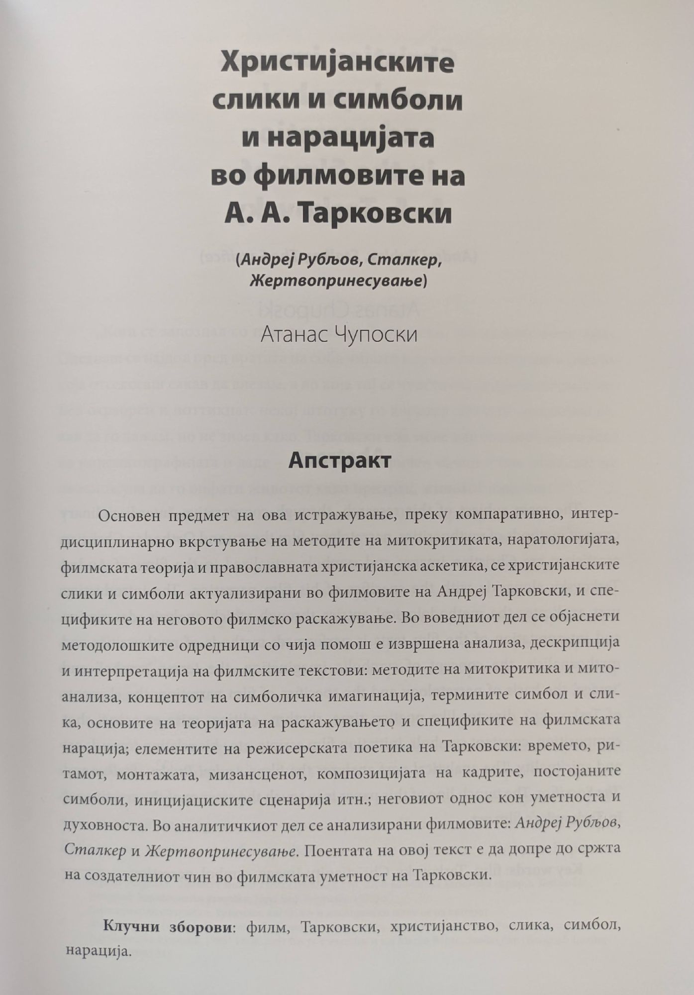 Христиjанските слики и симболи и нарациjата во филмовите на А. А. Тарковски