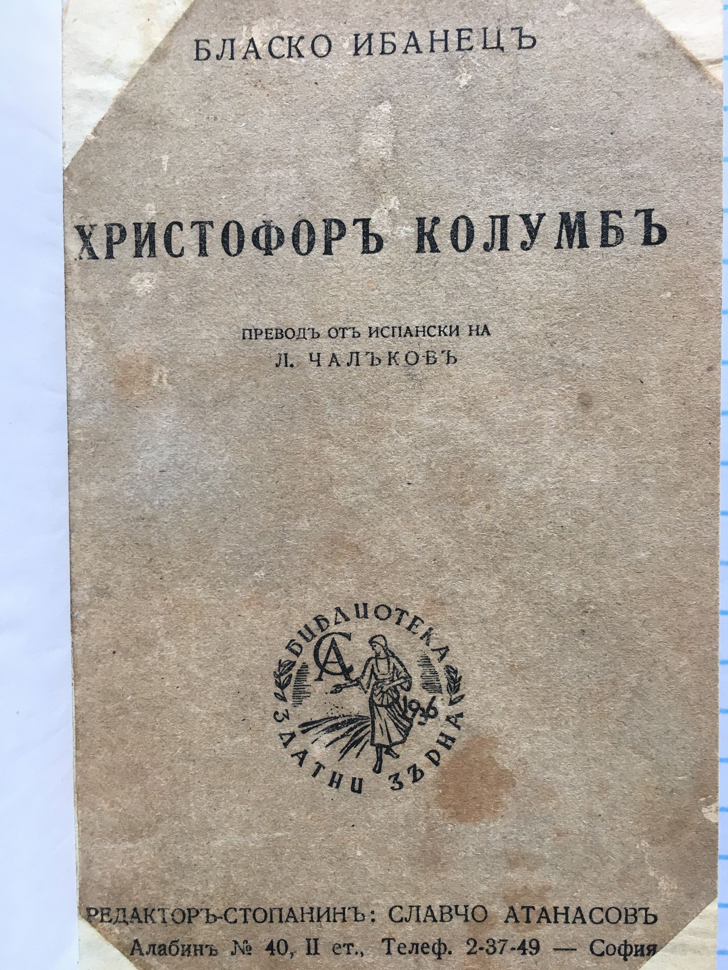 14,00 лв. / 7,16 €Добро състояние на книжното тяло. Без обложка. С оригинална твърда корица, леко зацапана на места. Повечето листове с малки тъмни следи по вътрешния им ръб (откъм гръбчето); подпис на титулната страница.