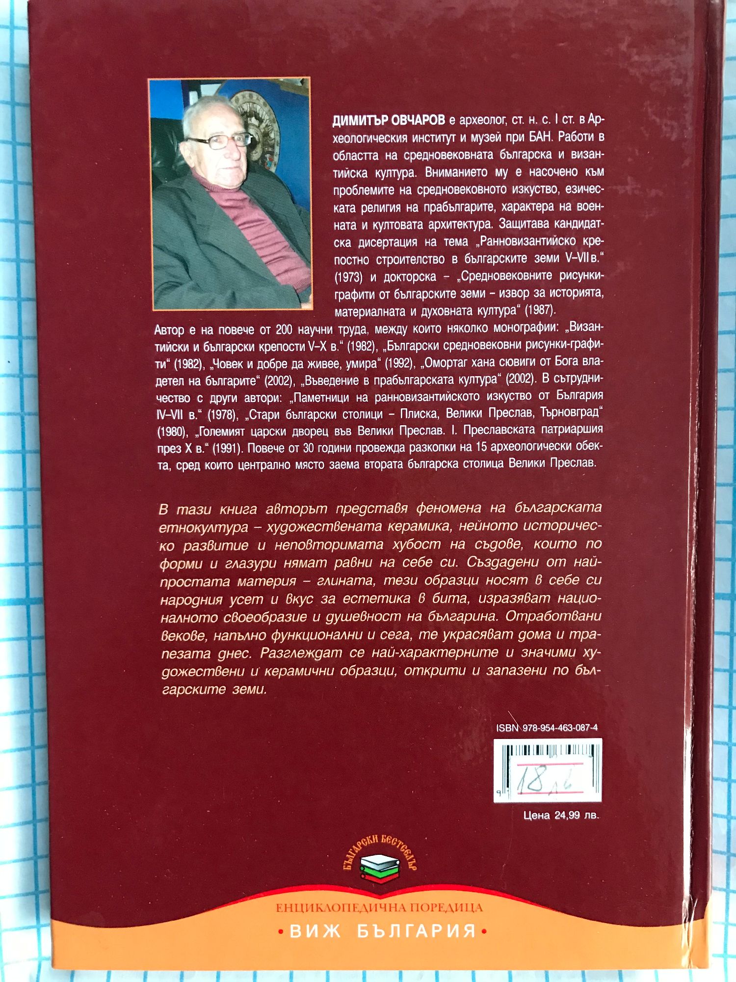 В тази книга авторът представя феномена на българската етнокултура - художествената керамика, нейното историческо развитие и неповторима хубост на съдове, които по форми и глазури нямат равни на себе си. Създадени от най-простата материя - глината, тези образци носят в себе си народния усет и вкус за естетика в бита, изразяват националното своеобразие и душевност на българина. Отработвани векове, напълно функционални и сега, те украсяват дома и трапезата днес. Разглеждат се най-характерните и значими художествени и керамични образци, открити и запазени по българските земи.